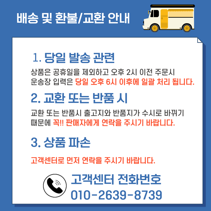 주문처리 및 택배 발송 이외의 용도로는 사용하지 않습니다.