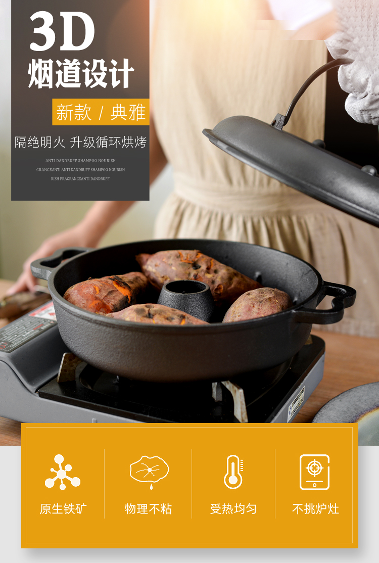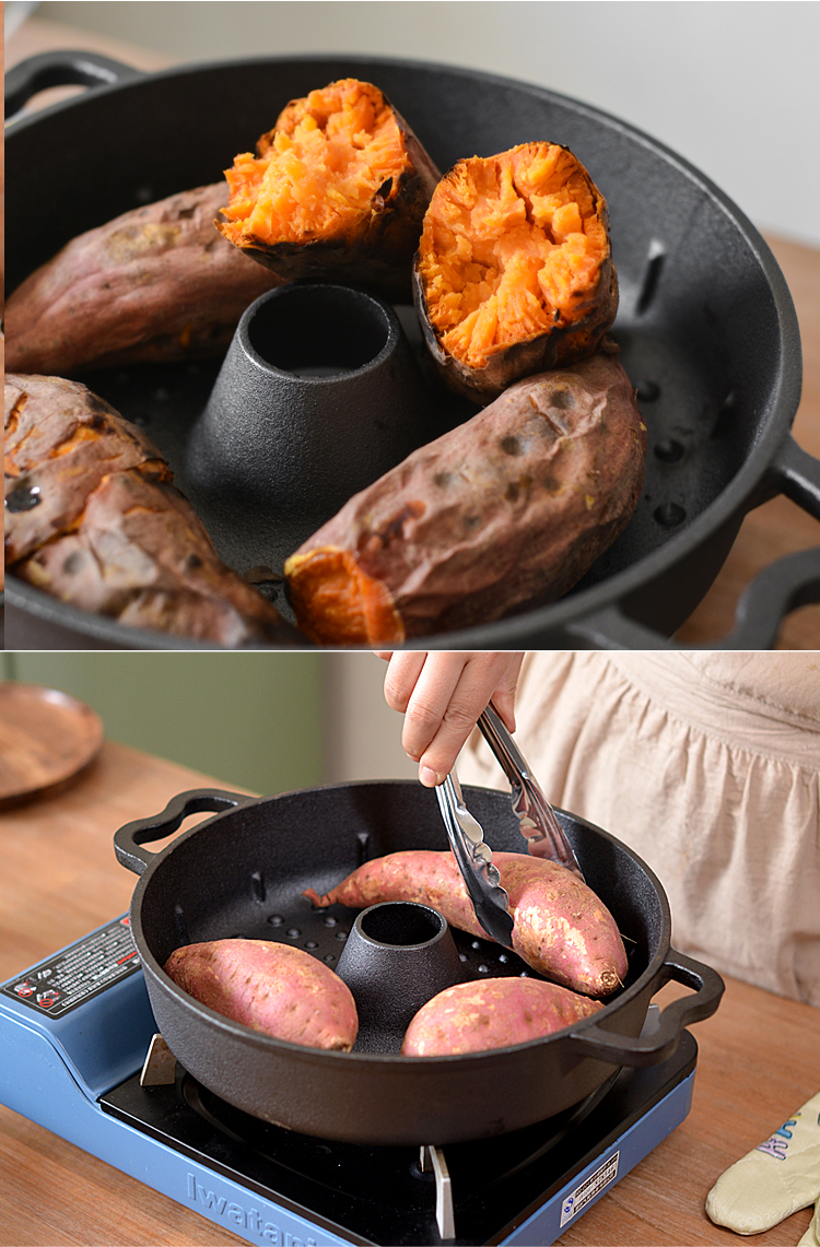 고구마굽는냄비 집에서군고구마 인덕션용 군고구마냄비 군고구마기계 S세트 가정용 주물팬 굽는