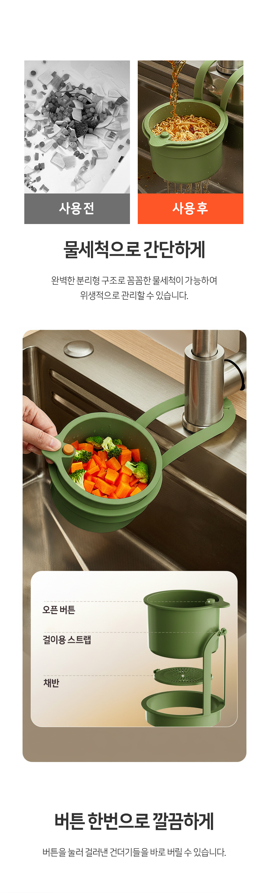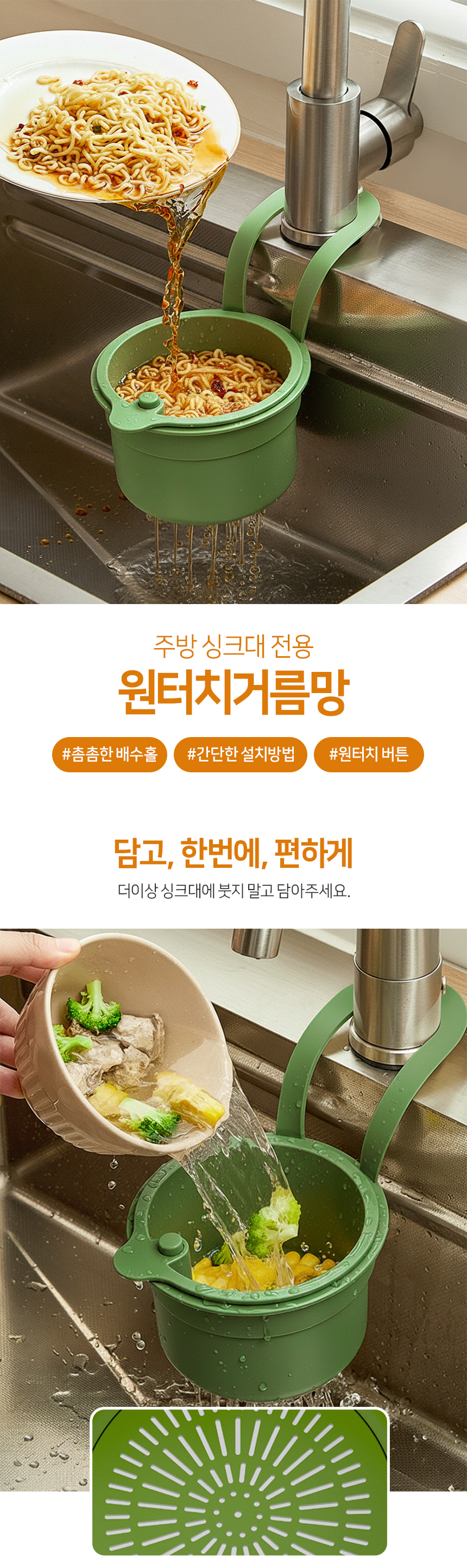 원터치 음식물 쓰레기 거름망 씽크대 거치대 음쓰 망