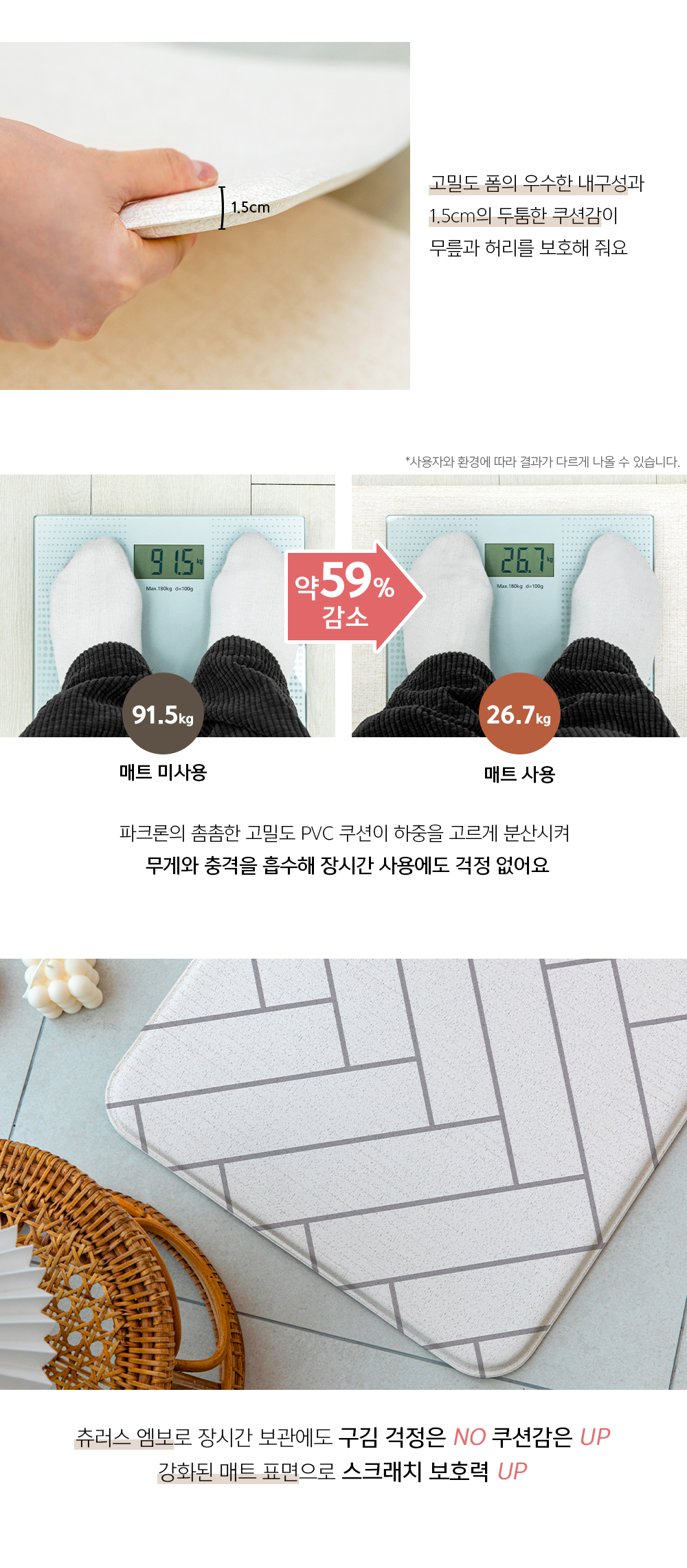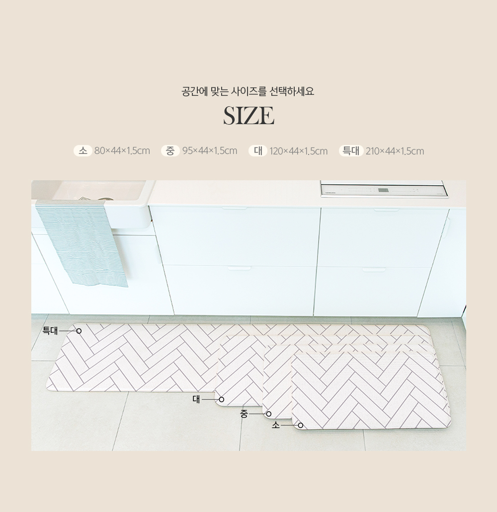 어반헤링본 주방매트 PVC 싱크 발매트 15T (특대) 210x44.1.5cm
