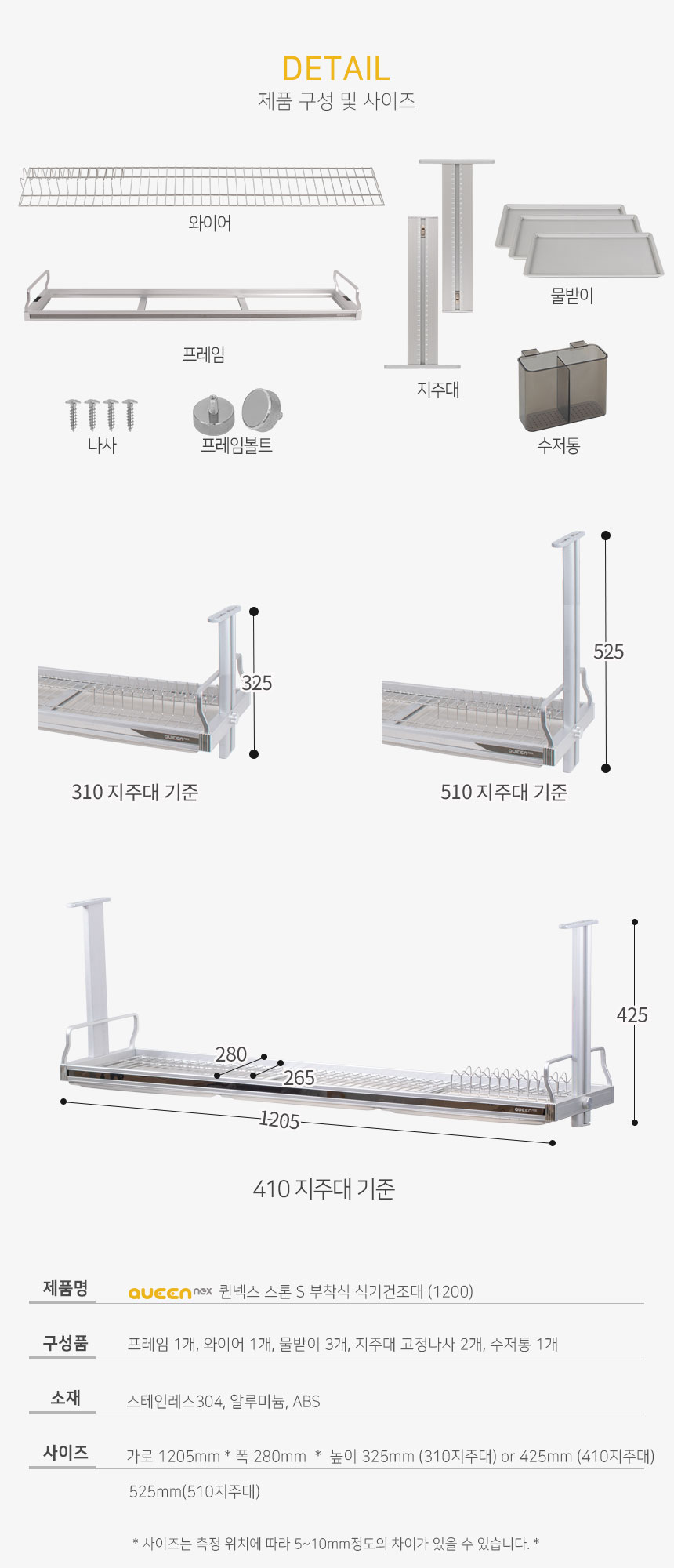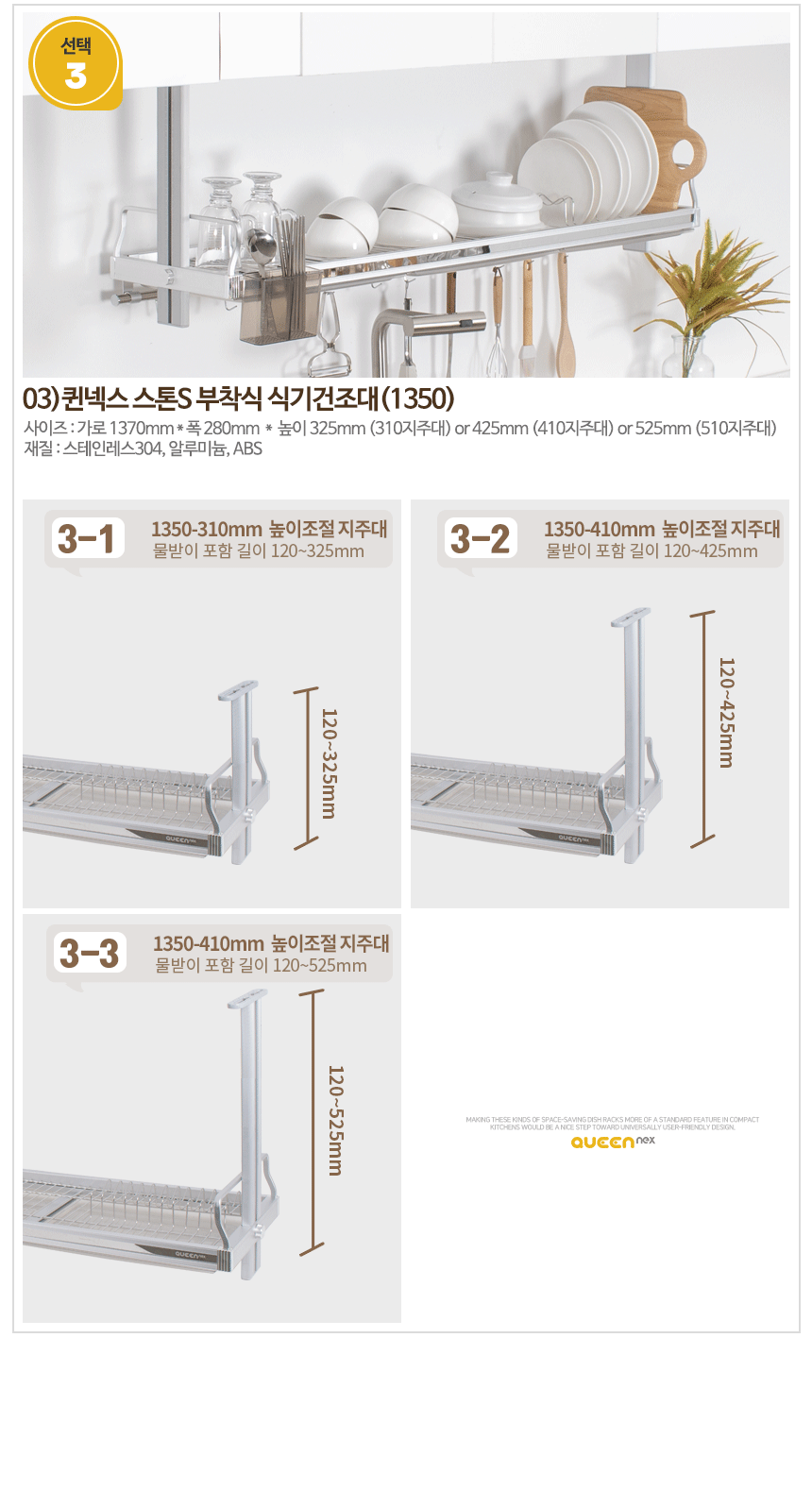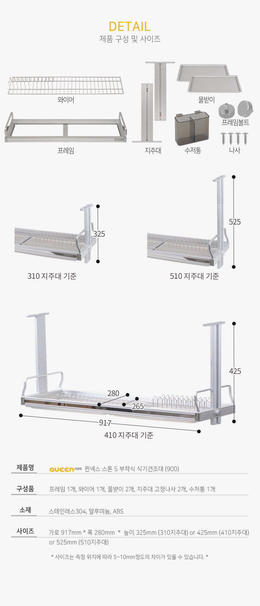 스톤S 식기건조대 높이조절가능한 창문형 부착식 식기건조대 900 1200 1350size 스텐304