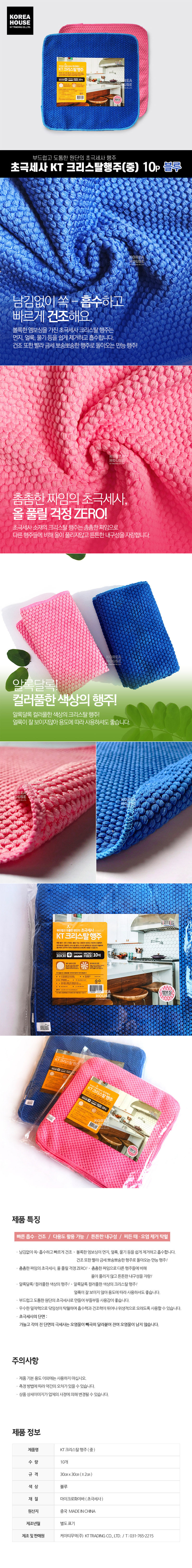 KT 초극세사 크리스탈행주 블루 중 10P (30x30) 타올