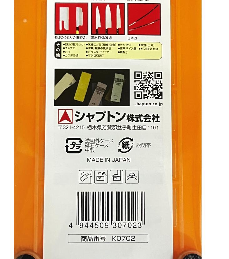 일본 최고의 숫돌 브랜드 샤프톤의 '인의흑막' 시리즈 중 가장 활용도가 높은 #1000 오렌지 숫돌입니다.