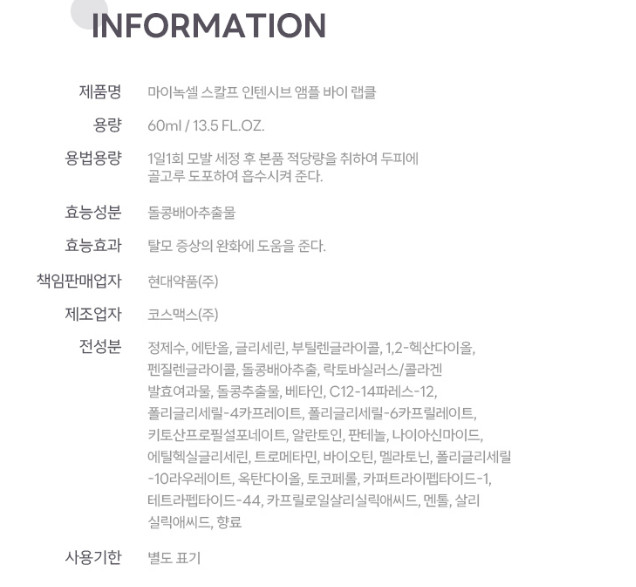바르는미녹시딜 마이녹셀 스칼프 인텐시브 탈모앰플 60mlx2개