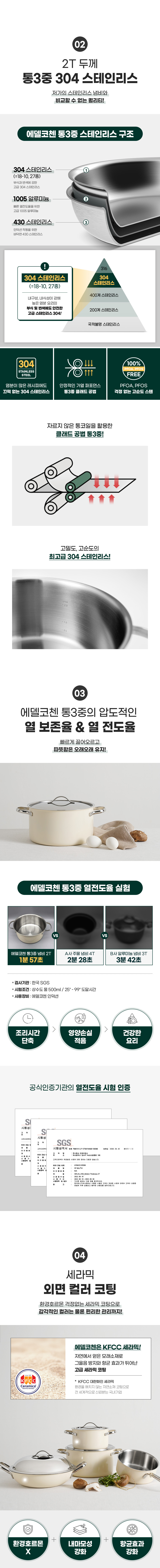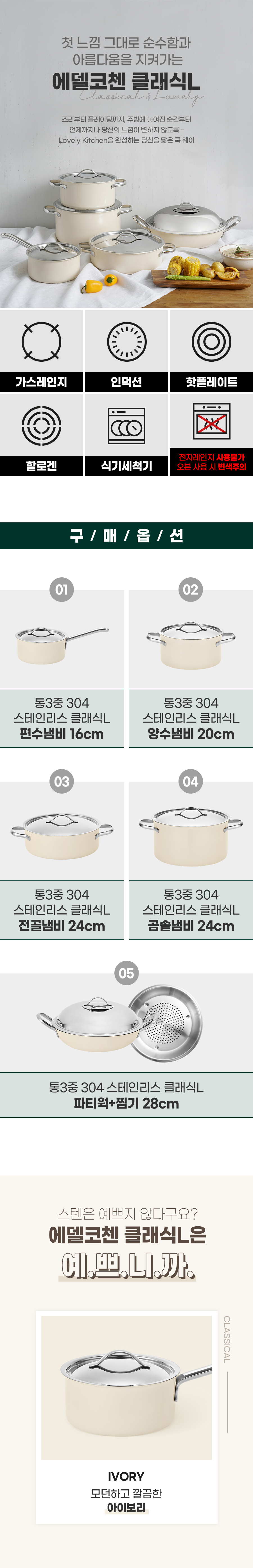 에델코첸 통3중 클래식L 양수냄비 20cm (아이보리)