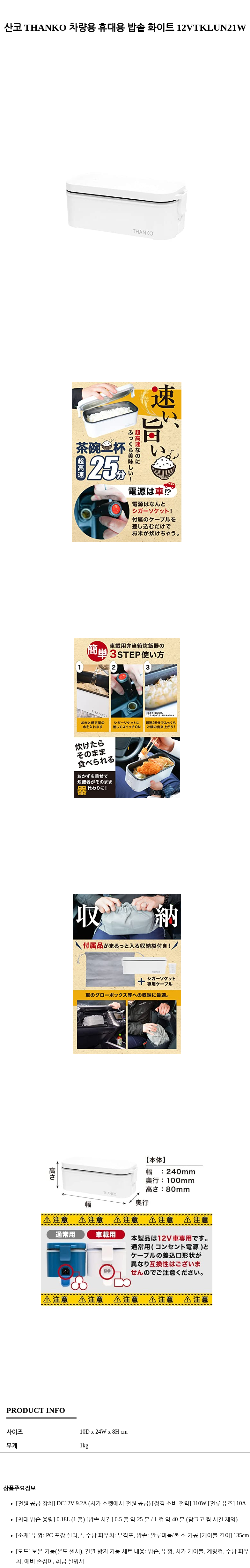 산코 THANKO 차량용 휴대용 밥솥 화이트 12VTKLUN21W