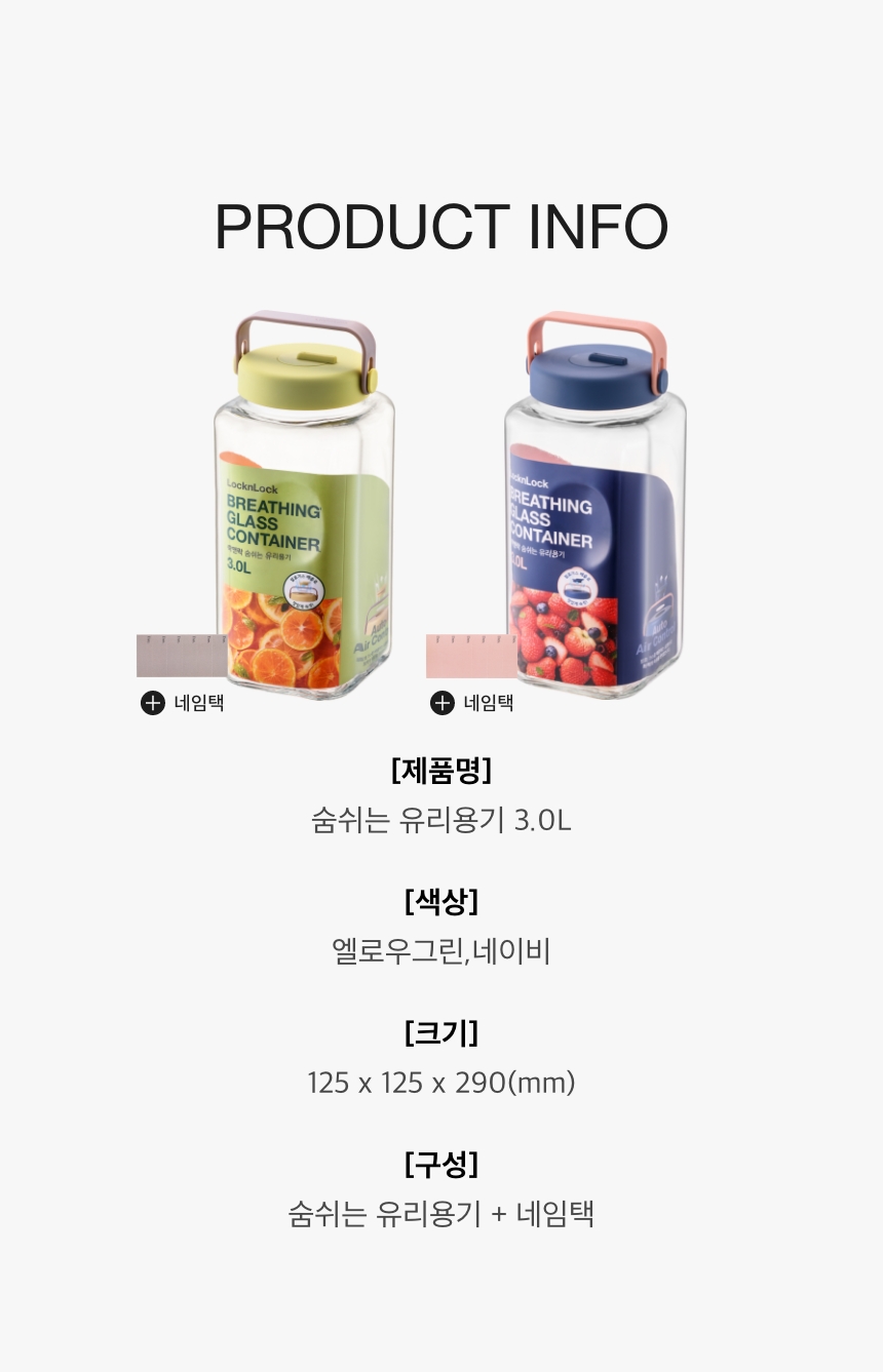 숨쉬는 유리용기 3L (네임택 포함) (LNG554)