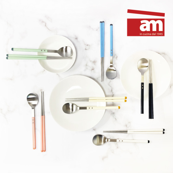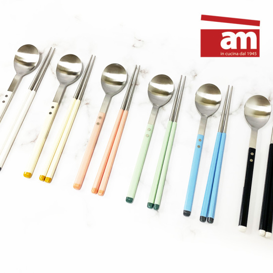 (롯데백화점)am 4인수저세트 모나미 수저세트 사각 수저 젓가락 세트