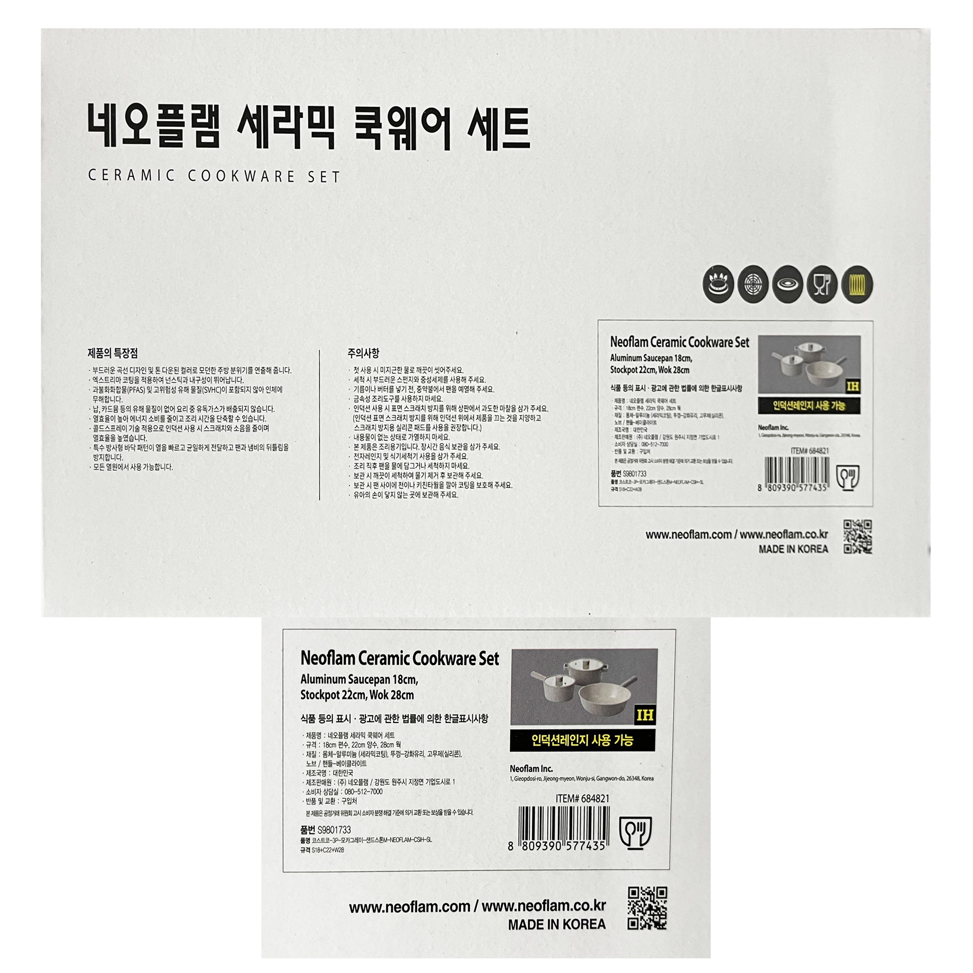 구성: 편수냄비 18cm, 양수냄비 22cm, 궁중팬 웍 28cm