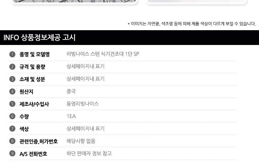 상품명 : 리빙나이스 스텐 식기건조대 1단 건조망 SP