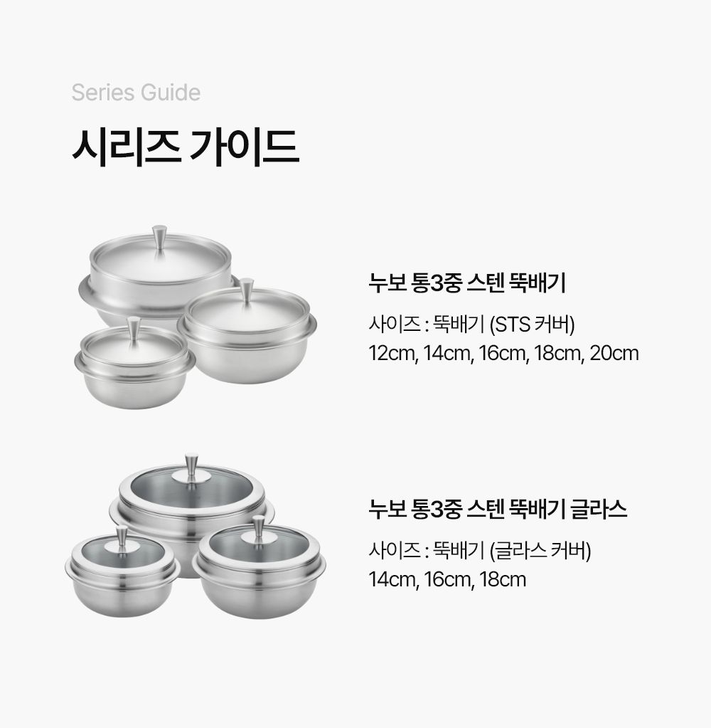 쿡에버 누보 인덕션 통3중 스텐 뚝배기 2종 세트 (G14+G16)