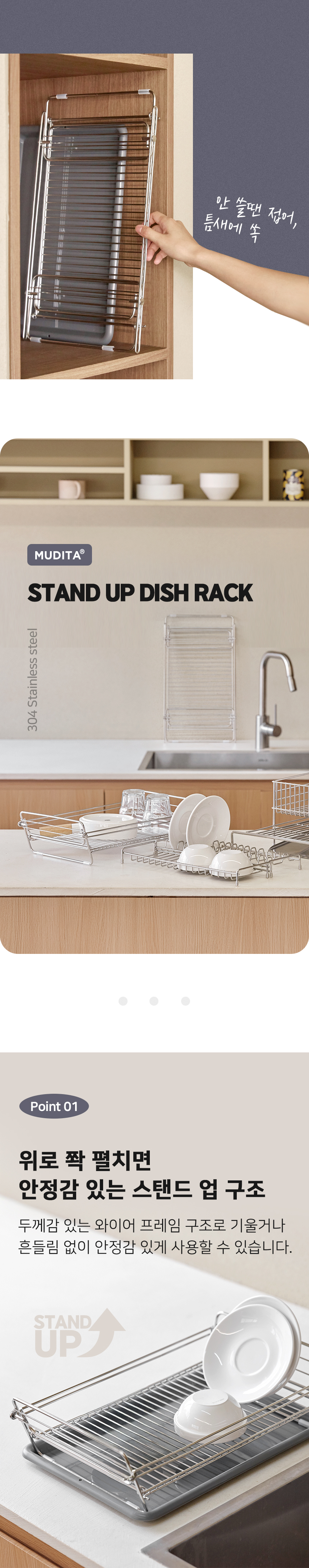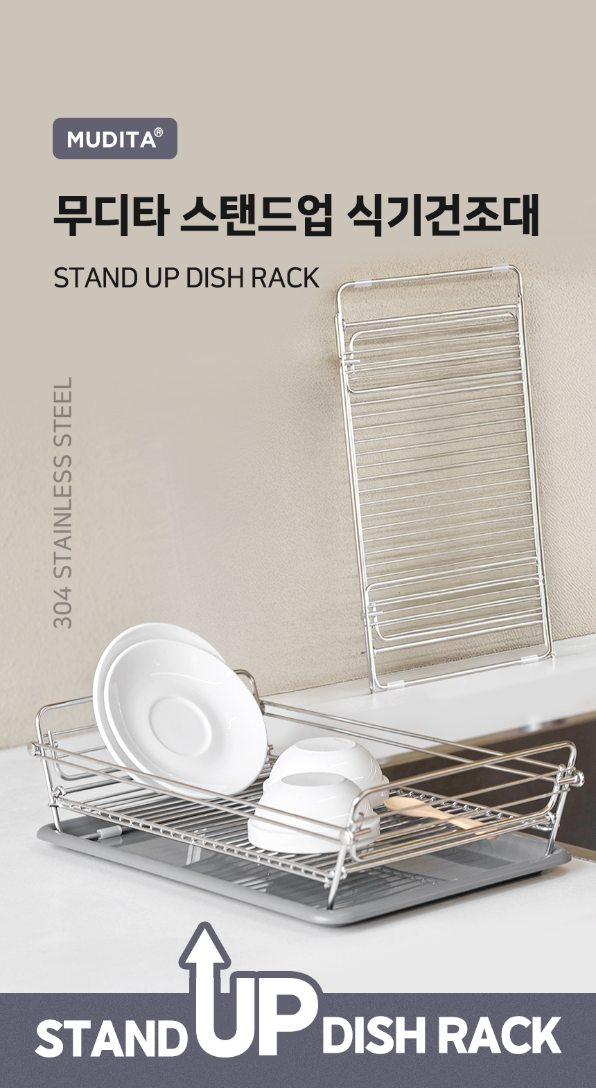 무디타 304 스텐 접이식 폴딩 스탠드업 식기건조대 (물받이 포함)