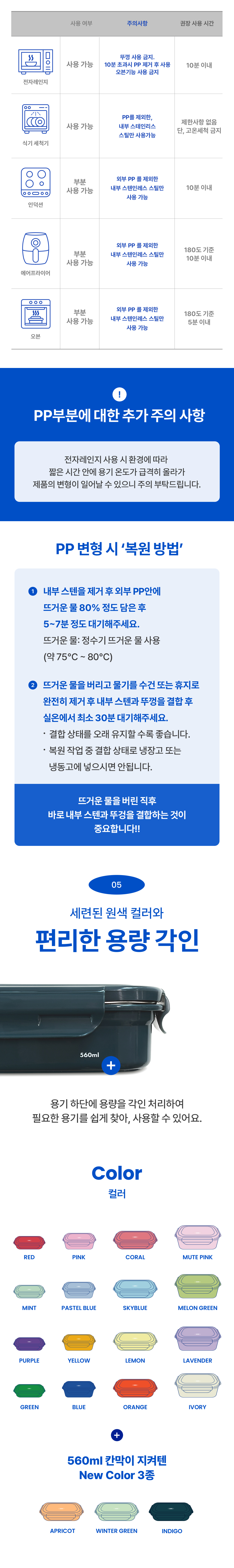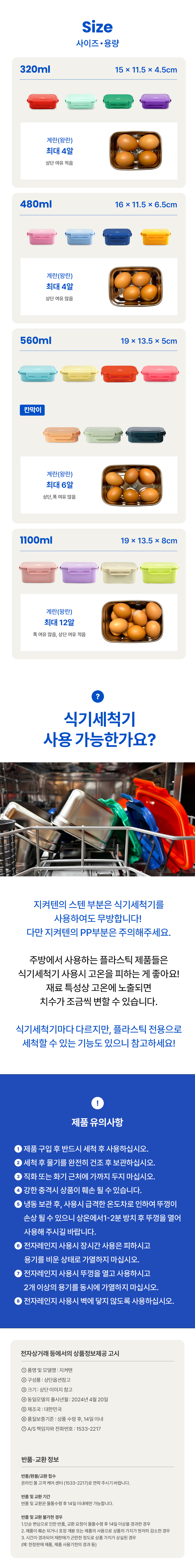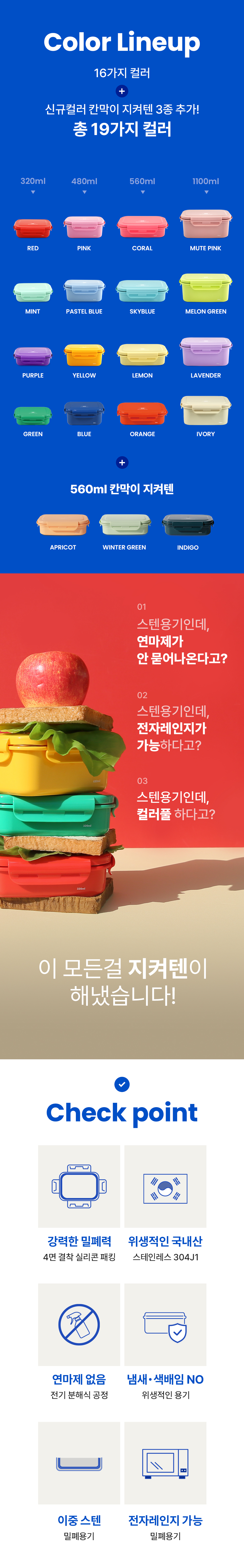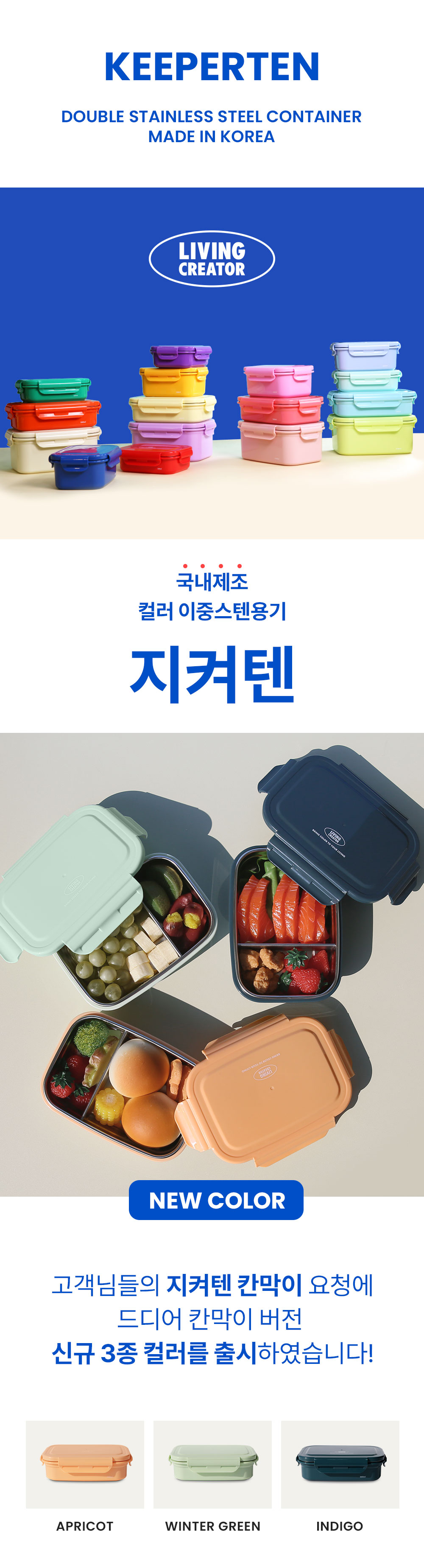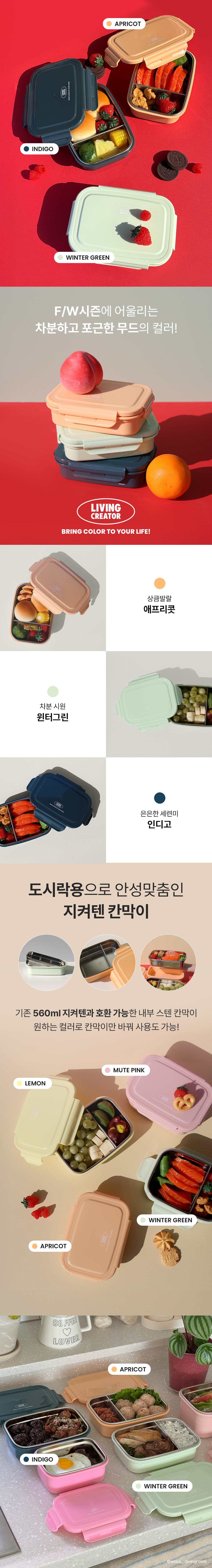 (리빙크리에이터)지켜텐 컬러스텐용기 560ml (칸막이)