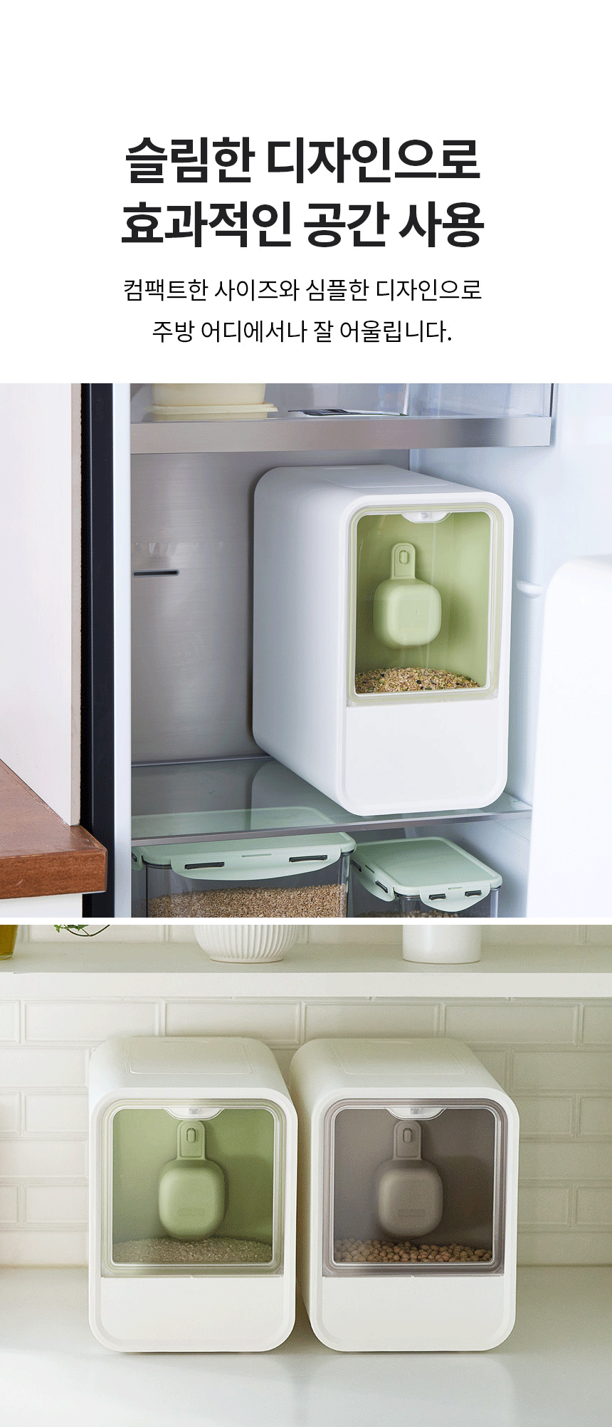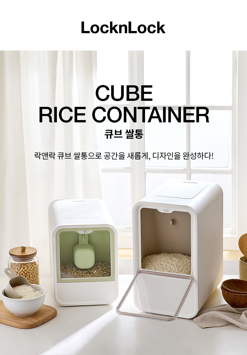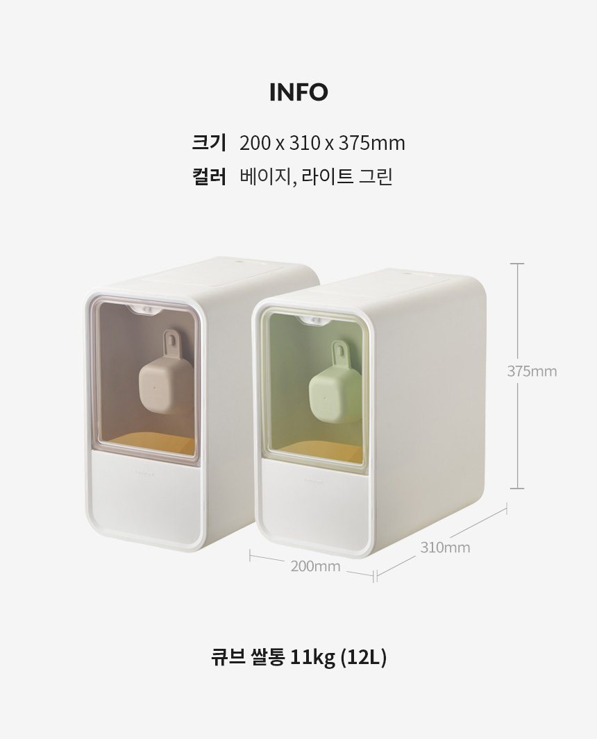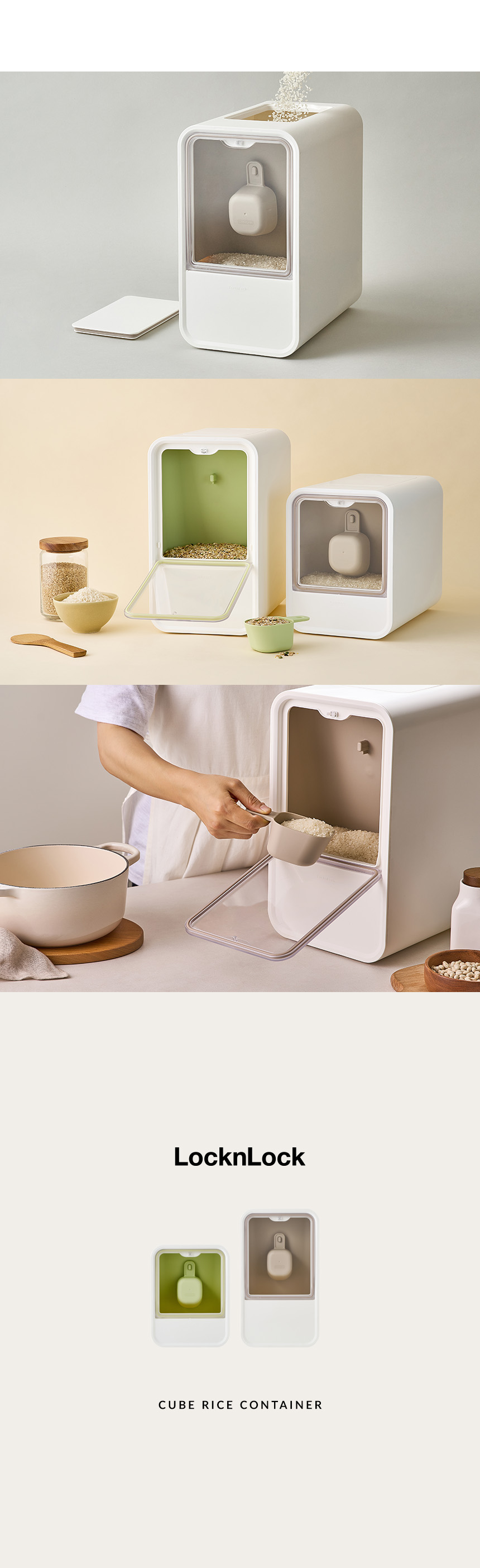 본사 큐브 쌀통 11kg(12L) 베이지/라이트그린 (HPL571)