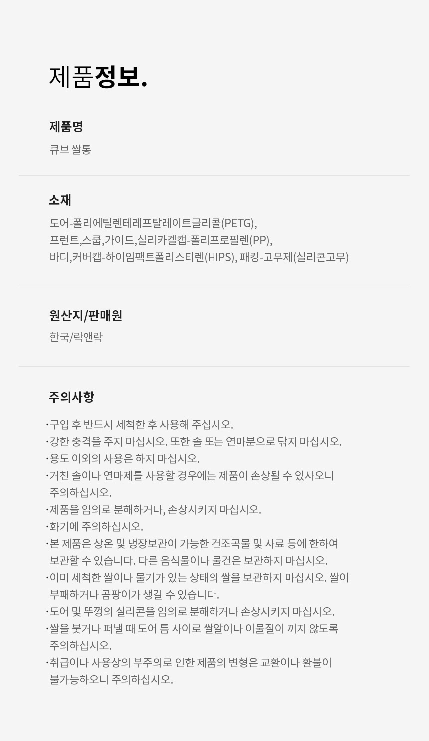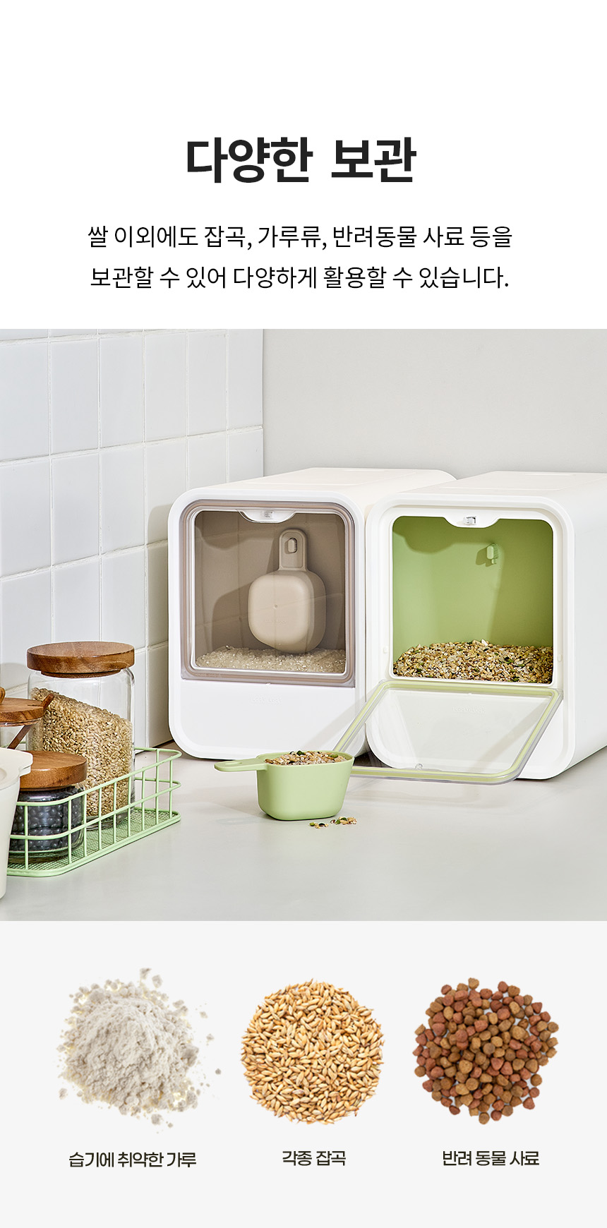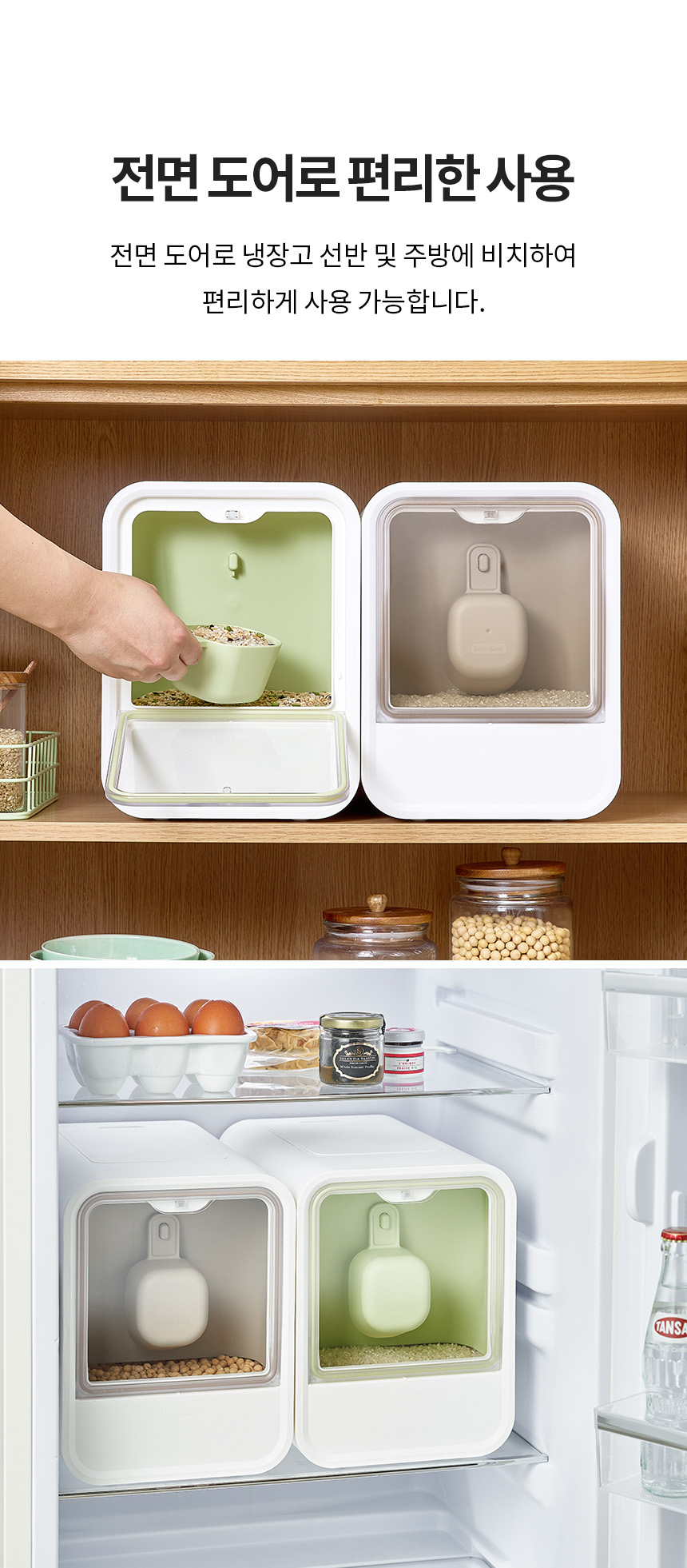 본사 큐브 쌀통 11kg(12L) 베이지/라이트그린 (HPL571)