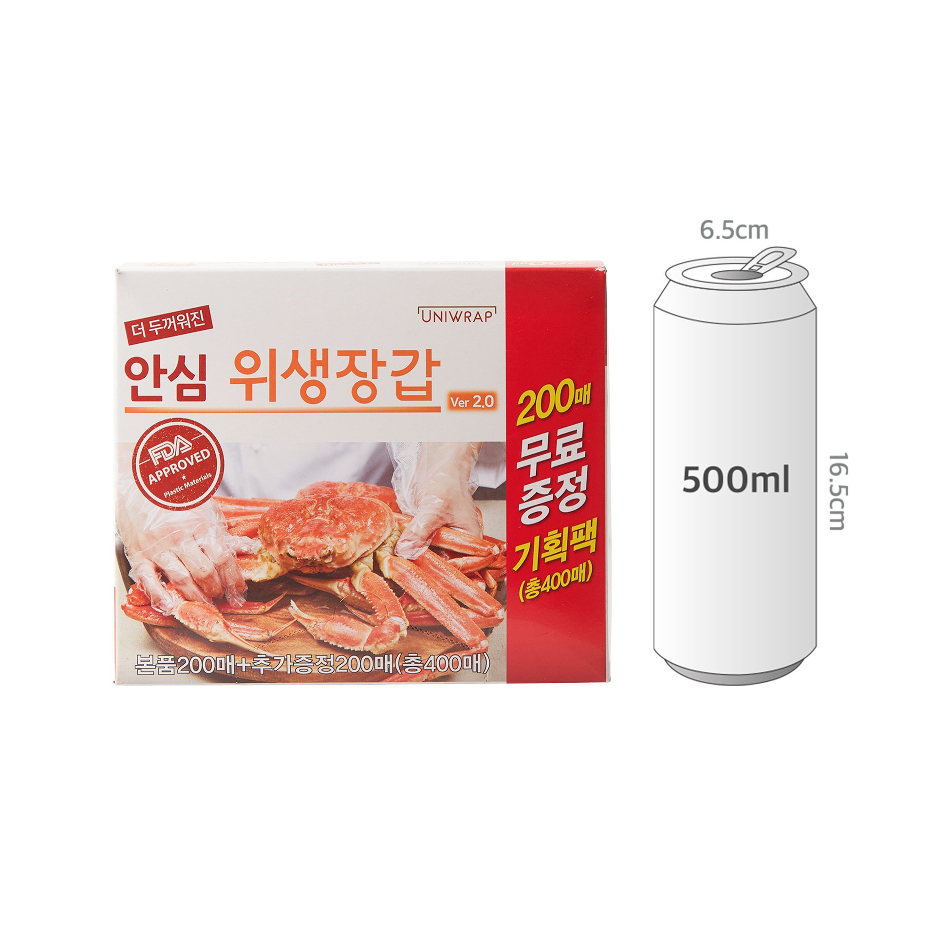 다양하게 활용할 수 있는 위생장갑이 더 두툼한 두께로 돌아왔어요. 기존보다 더 두꺼워져 액체가 손으로 스며들 위험이 적고 염색 약품을 사용해야 하는 셀프 염색도 더 안정적으로 할 수 있죠. 청소, 세차, 김장, 음식물 손질 등 어떤 곳에도 유용하게 쓰일 더 두꺼워진 안심 위생장갑을 만나 보세요. 총 400매의 구성으로 넉넉하게 사용할 수 있답니다.