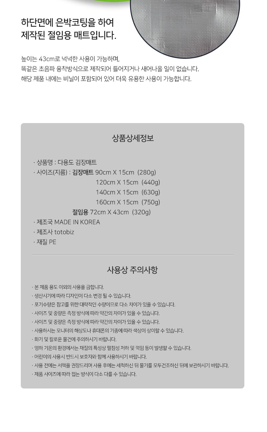 상품명 : 다용도 원형 김장매트 무봉제 은박 놀이 매트 160cm