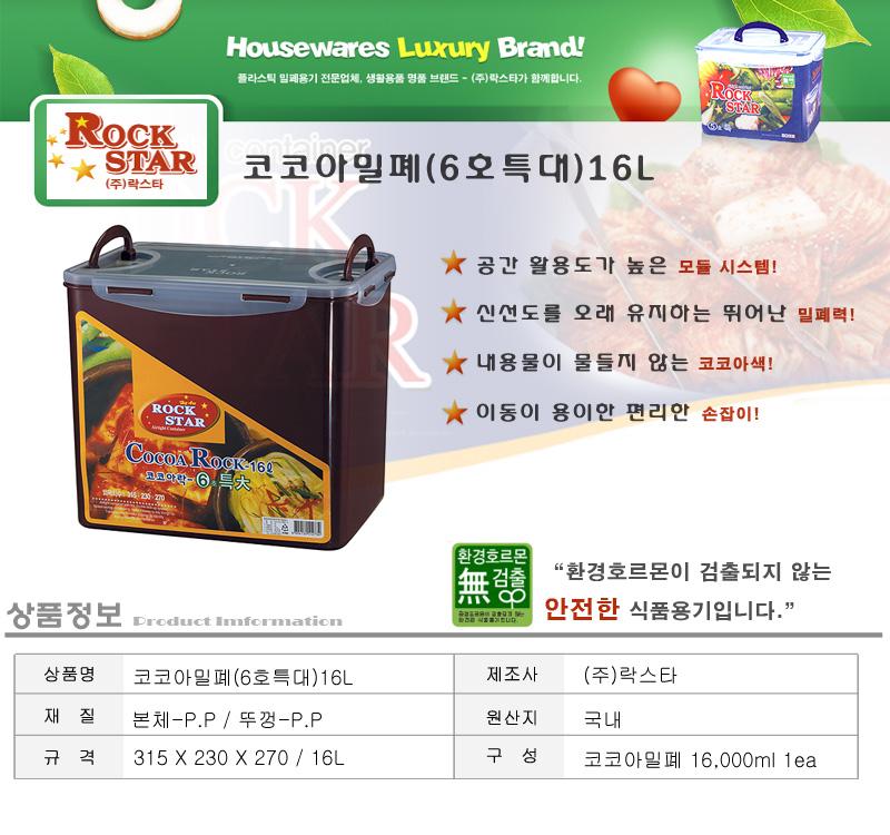 (16L) 코코아밀폐 6호 특대/플라스틱/밀폐/용기/직사각/김치통/김치/밀폐통/김장통/사각/밀페/보관통
