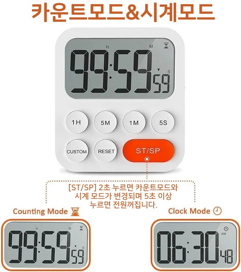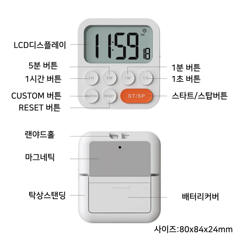 타임코치 다기능 원클릭 시계 메모리 타이머+배터리