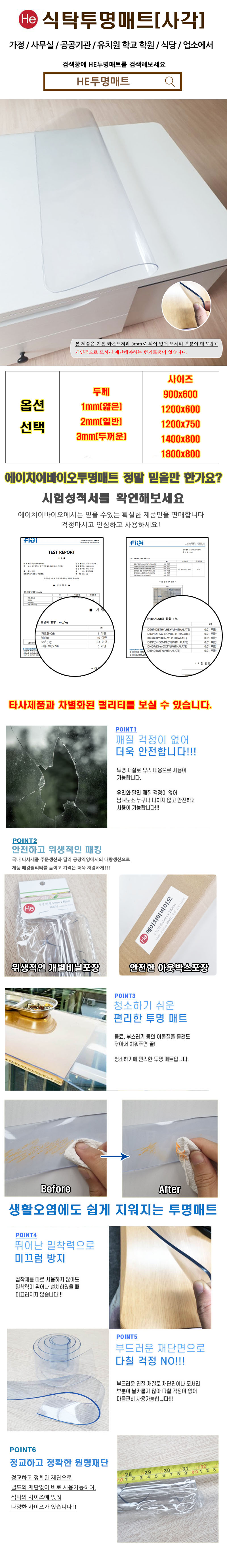식탁투명매트 개별포장제품 기본라운딩5mm 사각매트 방수 유리대용 실리콘 테이블 필름 비닐