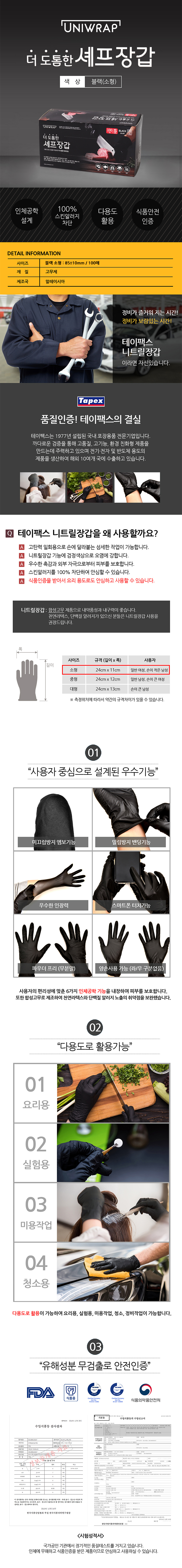 유니랩 더 도톰한 니트릴 장갑 파우더프리 식품 미용 청소용 중형 M 1곽(100매)