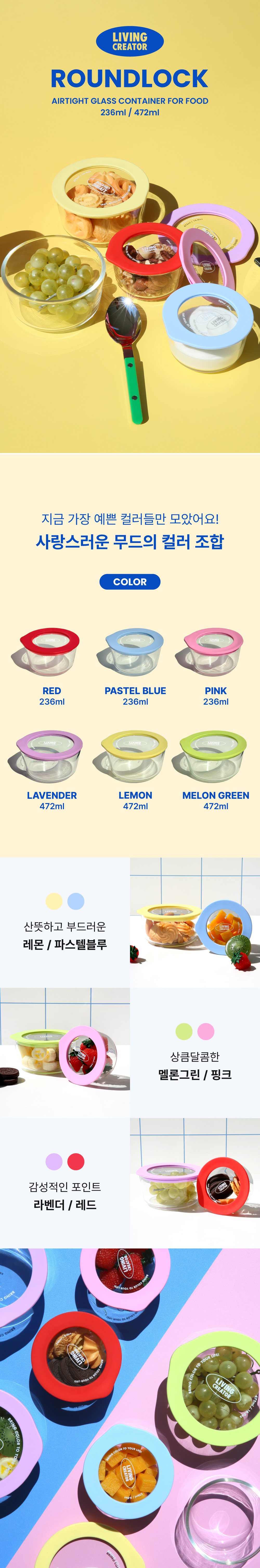 리빙크리에이터 한눈에 보이는 유리용기 동그락 (3color)