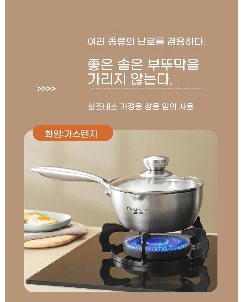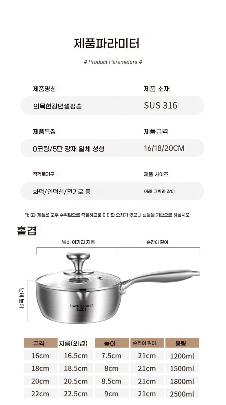 스테인레스 편수냄비 인덕션 겸용 스텐 편수냄비+뚜껑