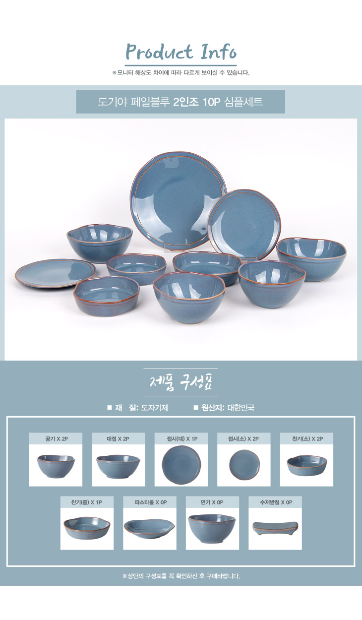 (현대Hmall)도기야 페일블루 2인 10P 심플 세트