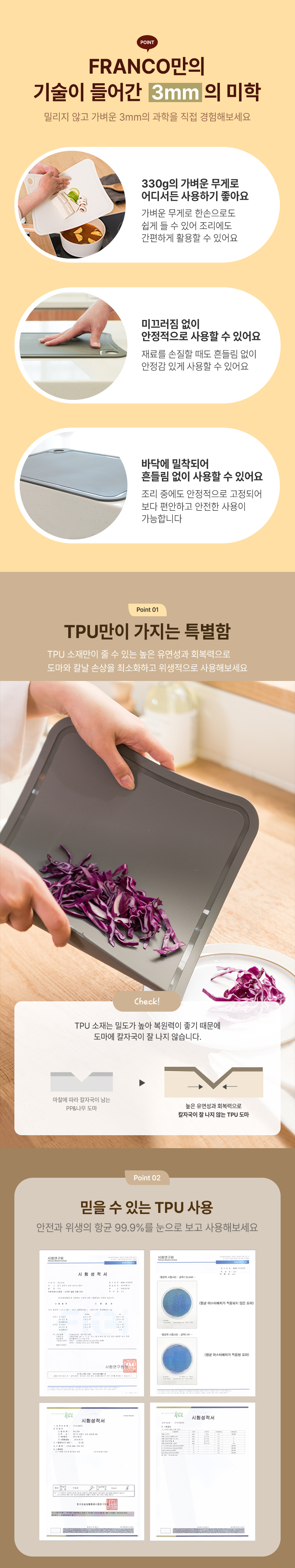 (1+1 한정특가) 프랑코 TPU 항균도마 4컬러 / 소프트도마 슬림도마 TPU도마 하드도마 / 칼자국 없는 도마