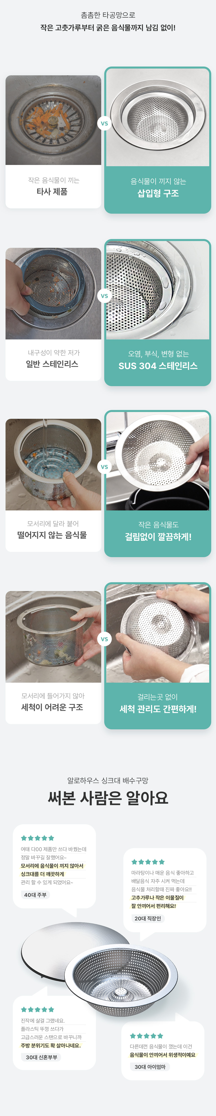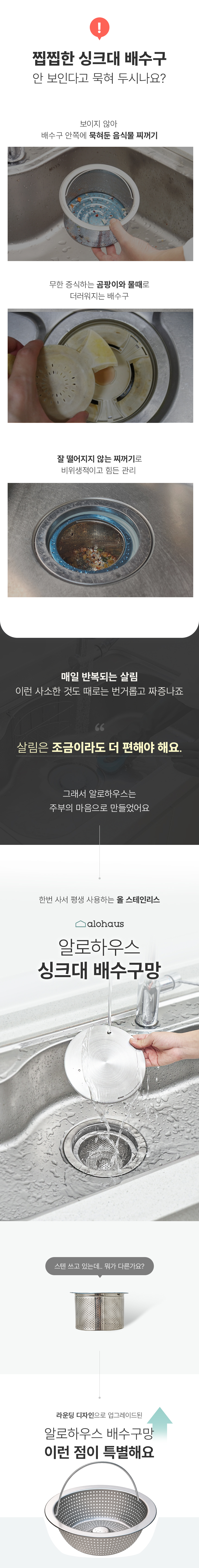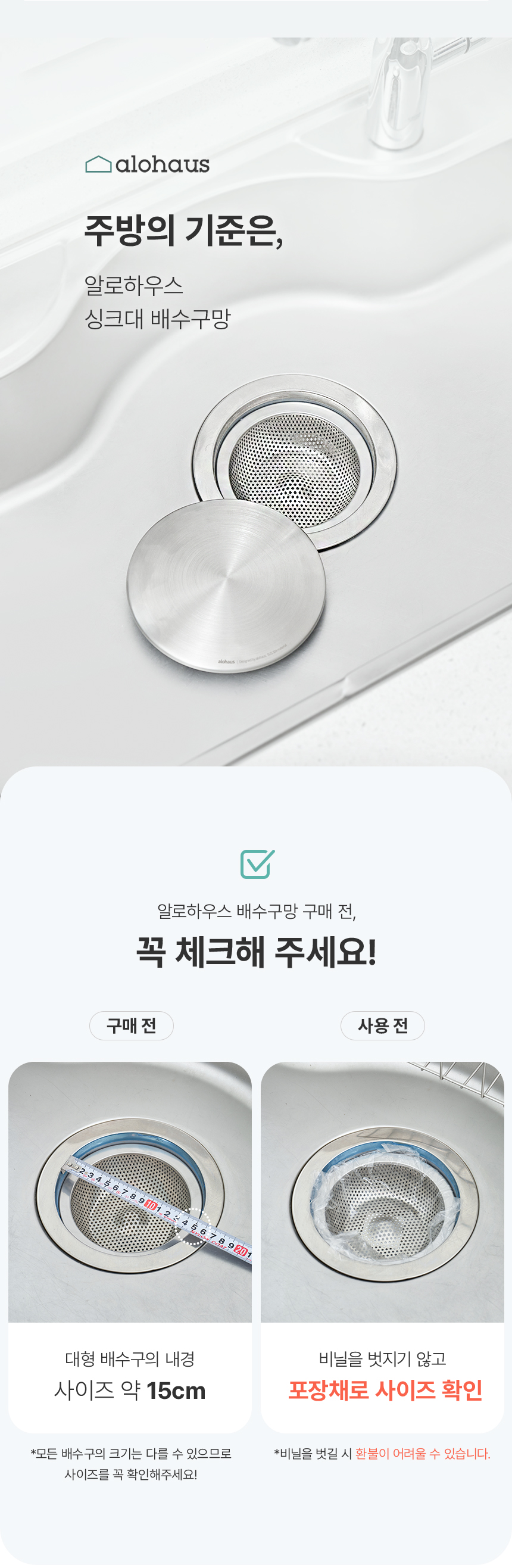 알로하우스 톡톡 싱크대 배수구망+고급형 커버 올스테인리스 SUS 304