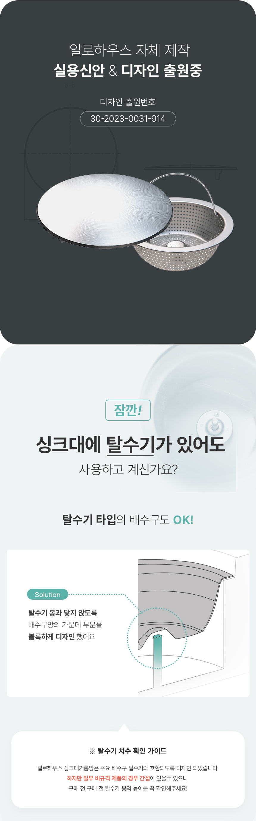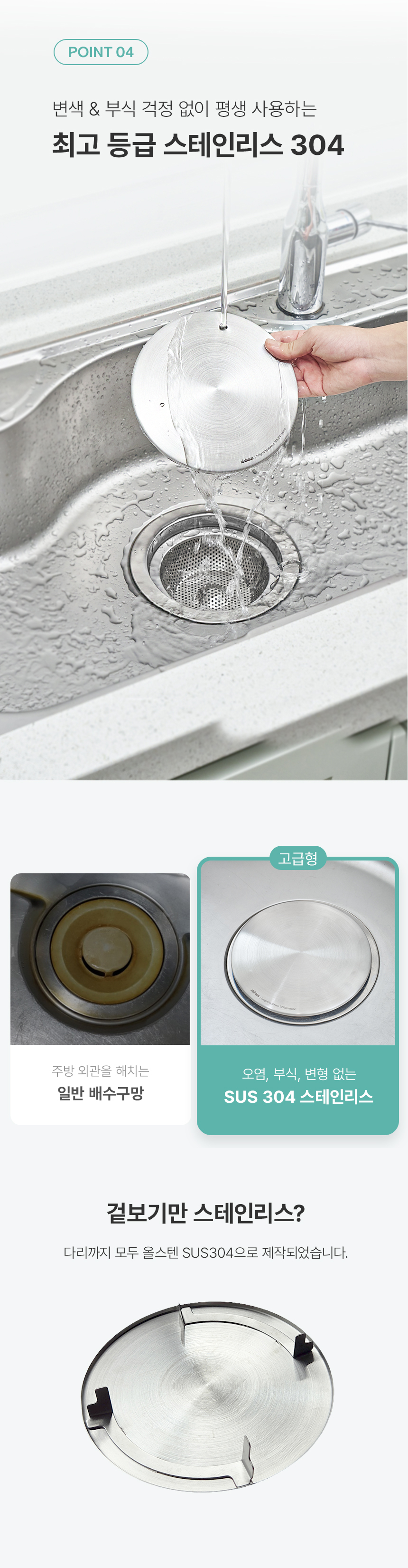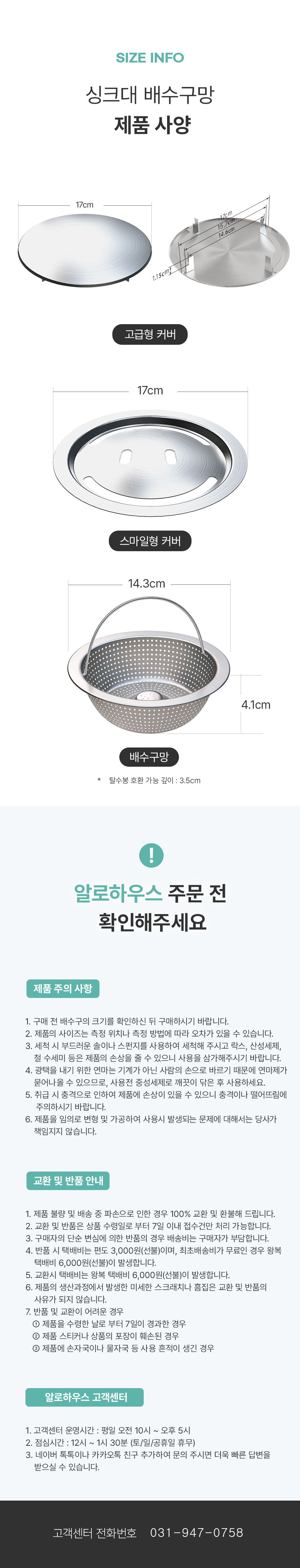 알로하우스 톡톡 싱크대 배수구망+고급형 커버 올스테인리스 SUS 304