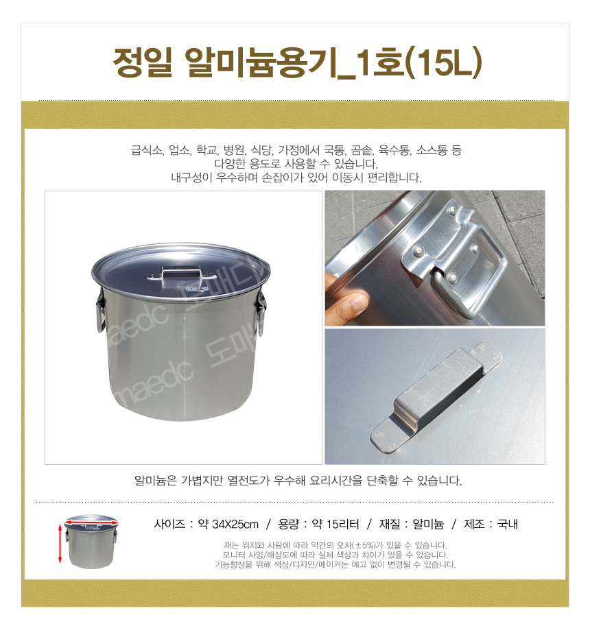 15리터/알미늄용기/위생용기/육수통/곰솥/국통/급식용
