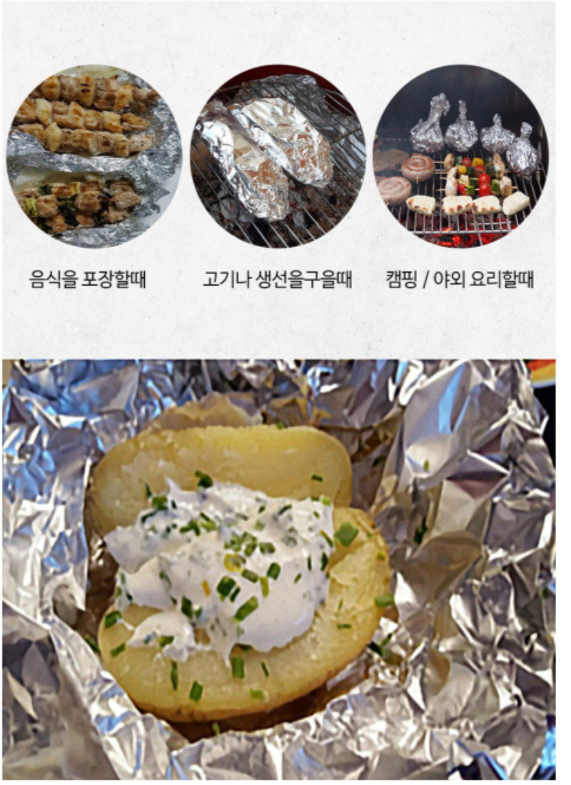 숯불 가스불에 직접 닿으면 호일이 녹거나 찢어질 수 있습니다.
