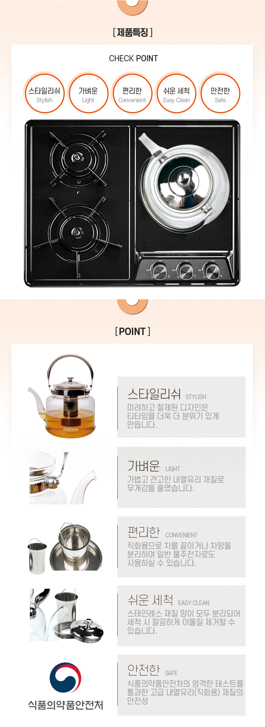 가볍고 견고한 내열유리 재질로 무게가 가벼워 사용감이 뛰어납니다.