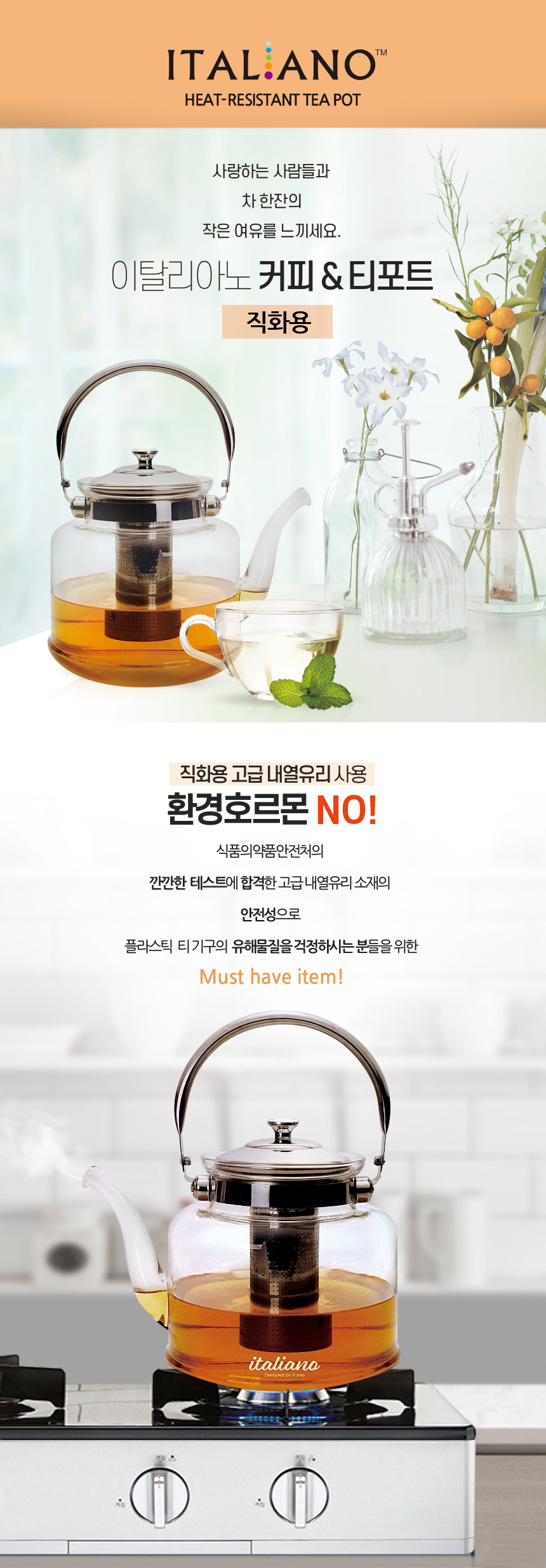 이탈리아노 커피 & 티포트 1.5L 직화용