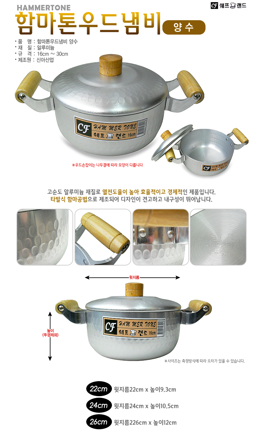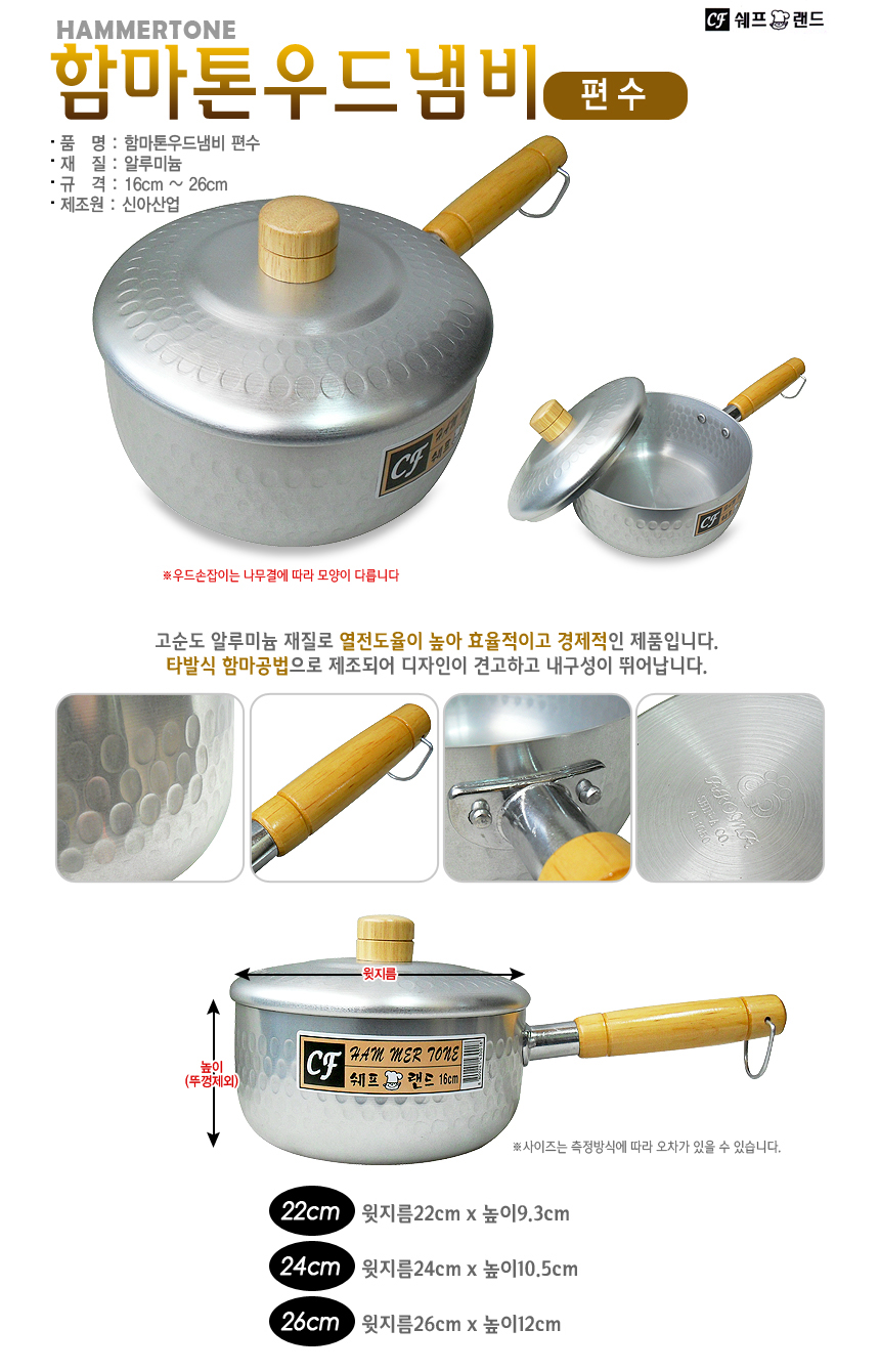 셰프랜드 함마톤 우드 양수 편수 22cm 24cm 26cm