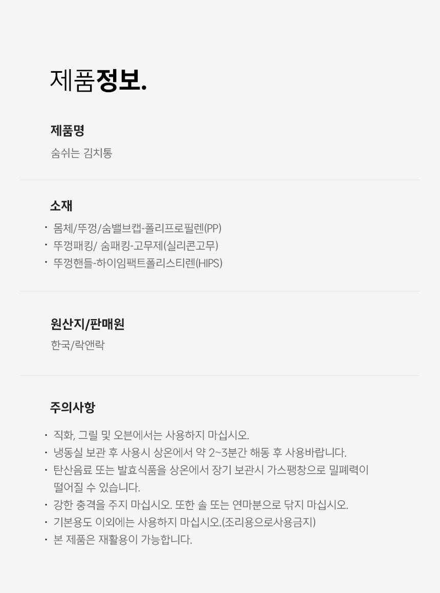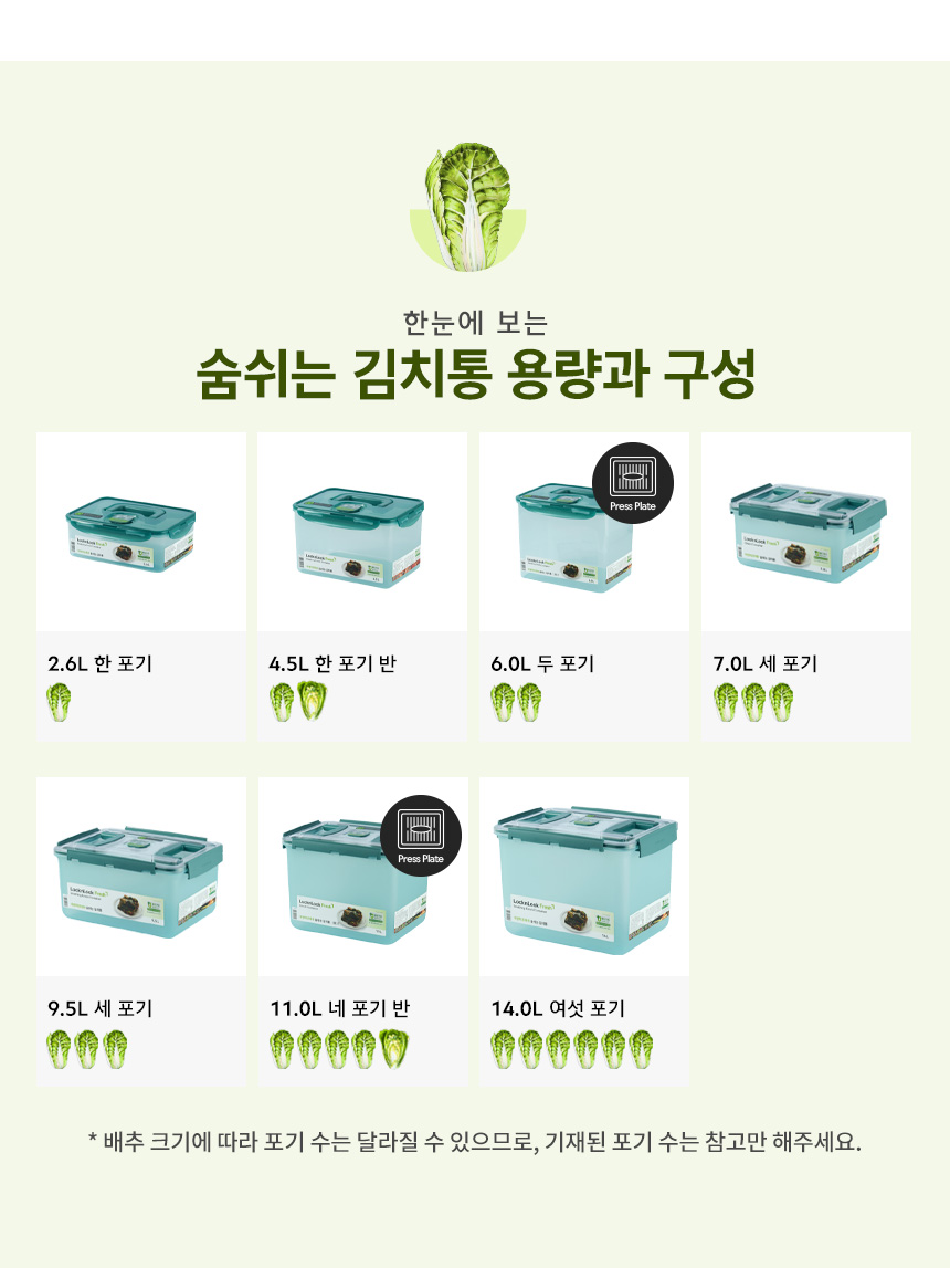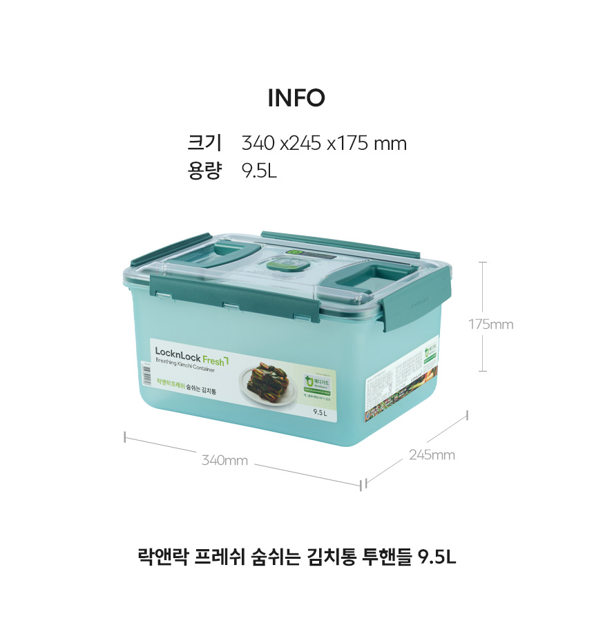 본사 프레쉬 숨쉬는 김치통 투핸들 9.5L 2P세트