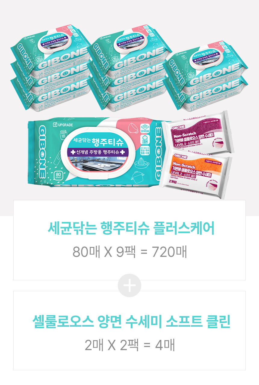 세균닦는 행주티슈 9팩 + 셀룰로오스 소프트 양면 수세미 2팩
