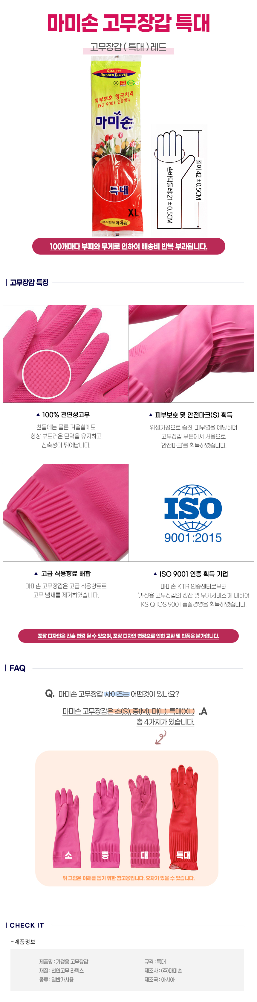 마미손 고무장갑 특대 XL 10켤레 레드