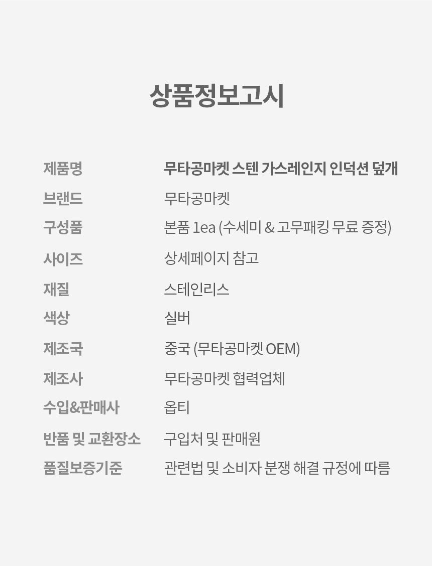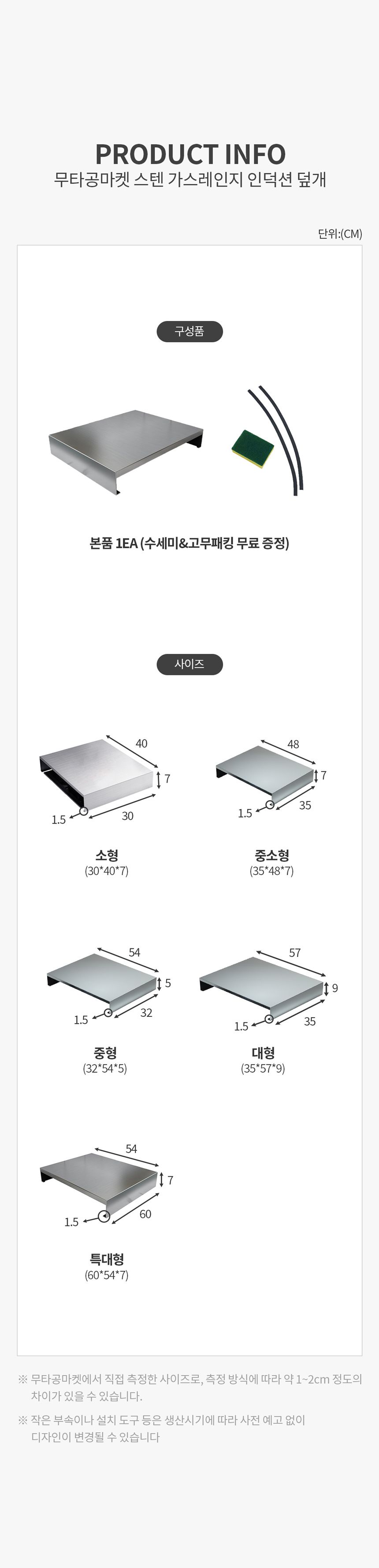 스텐304 청결관리 가스레인지 덮개 인덕션 받침대 커버