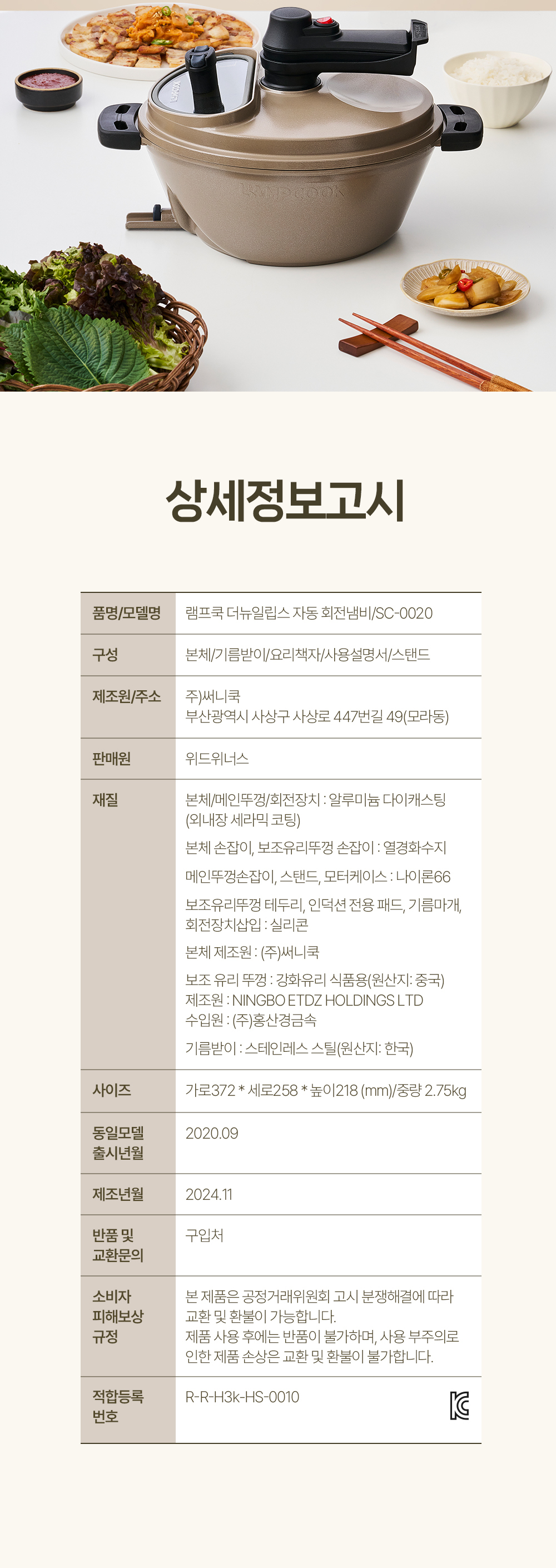 램프쿡 램프쿡 자동회전냄비 더뉴일립스 25년형 SC-0020