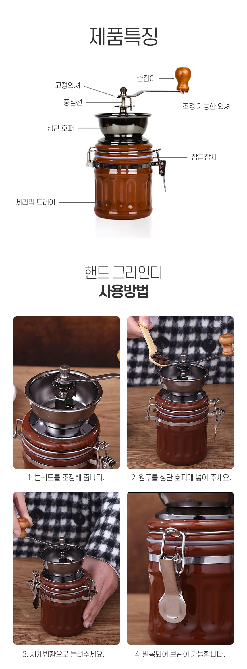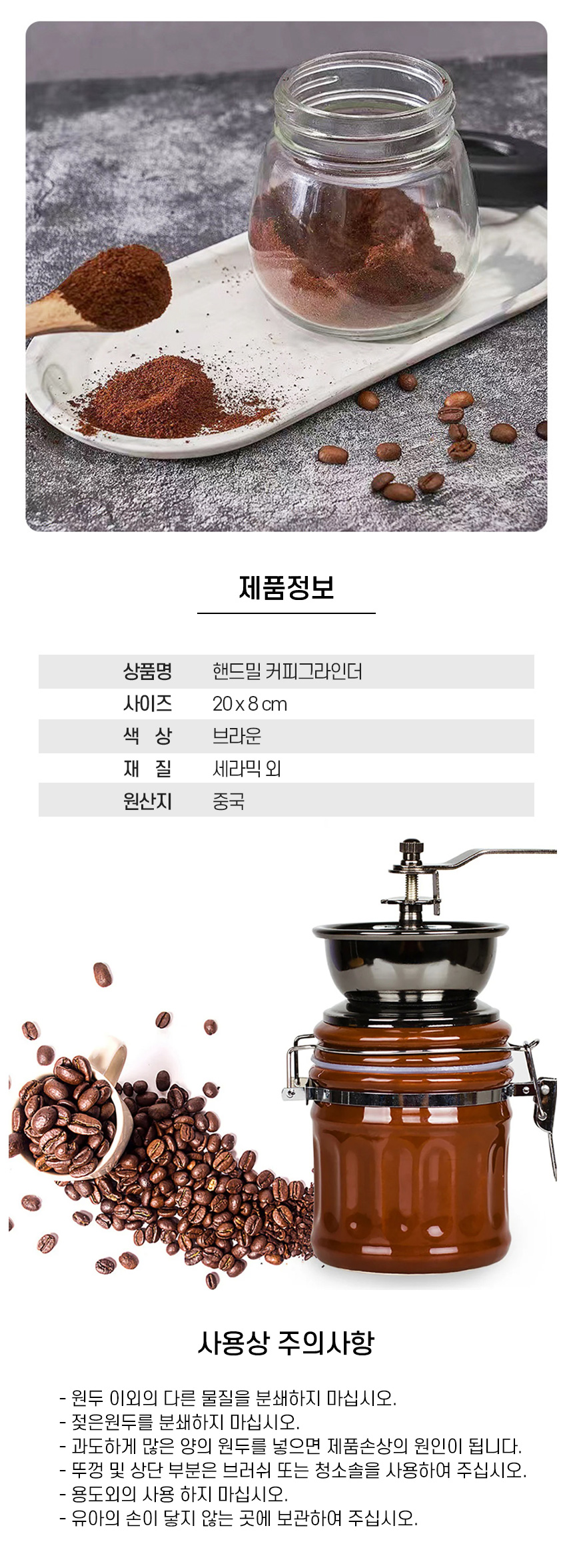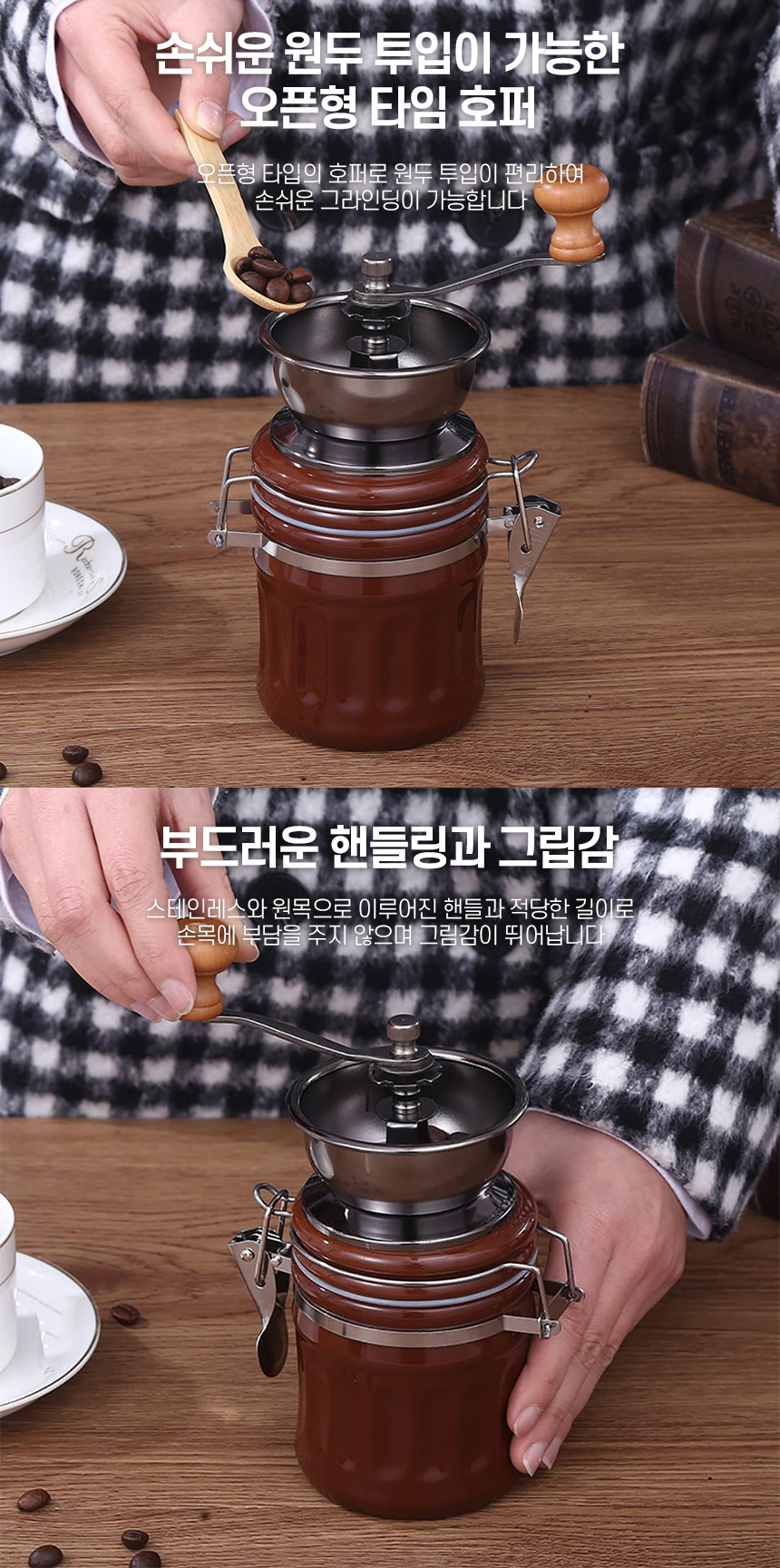 휴대용카피그라인더 소형 커피 분쇄기 핸드밀 수동 오픈형