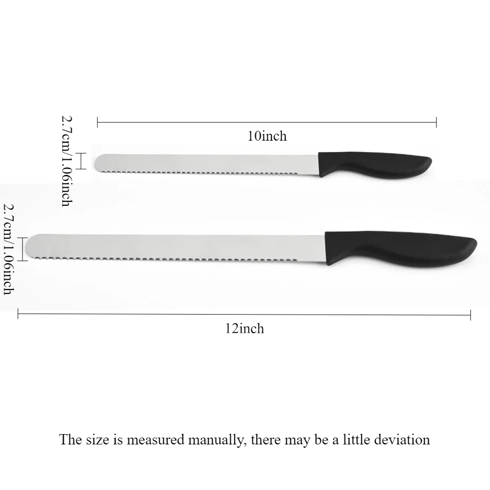 10/12인치 최고급 톱니형 빵칼 케이크 커터 긴 바게트 칼 스테인리스 재사용 용이 슬라이서 가능 스틸