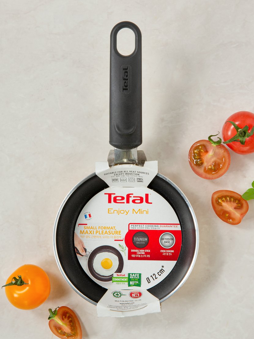 작은 크기로 제작되어 쉽고 간편하게 활용할 수 있는 테팔 인조이 미니 옐로우입니다. 12cm 크기의 프라이팬인 만큼, 간단하게 조리해 먹는 음식을 만들거나 1인 가구에 특화된 프라이팬이죠. 크기는 작아도, 고르게 열이 전도되는 테팔만의 프라이팬 바닥 기술을 사용해 만들어 팬이 전체적으로 고르게 달궈진답니다. 팬 부분은 유해 물질이 검출되지 않는 코팅을 거쳐 제작되었고, 강력한 티타늄 논스틱 코팅이 되어있어 음식이 쉽게 달라붙지 않아요.