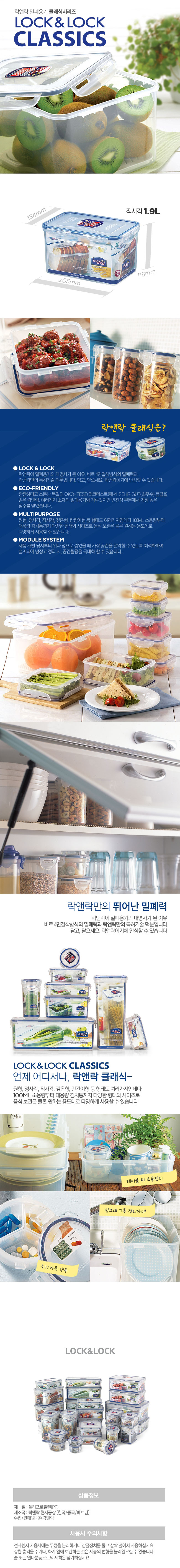 락앤락 HPL818 클래식 밀폐용기 직사각 1.9L