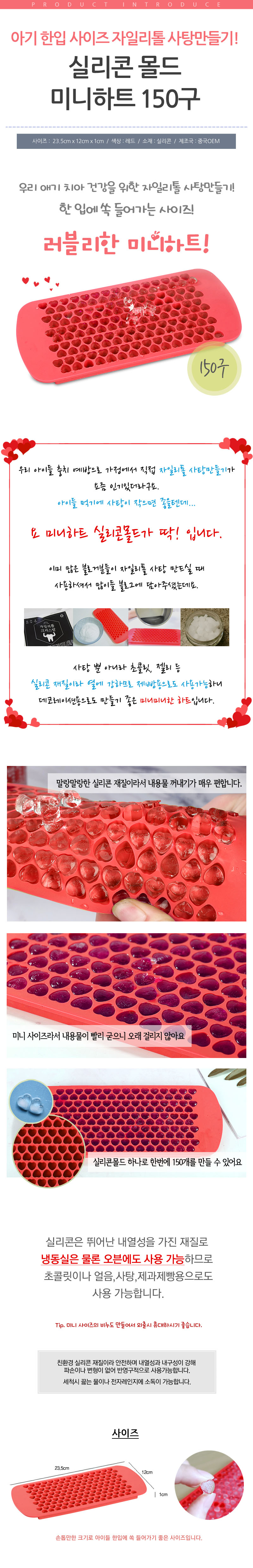 실리콘 몰드 미니하트 150구 자일리톨사탕 만들기 얼음틀 아이스트레이 홈베이킹