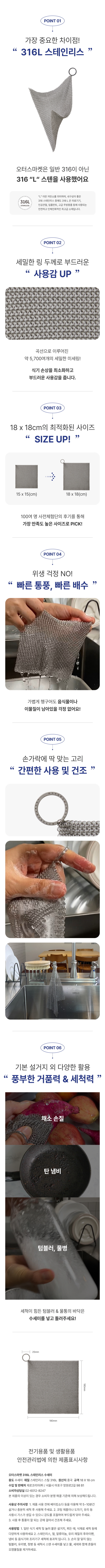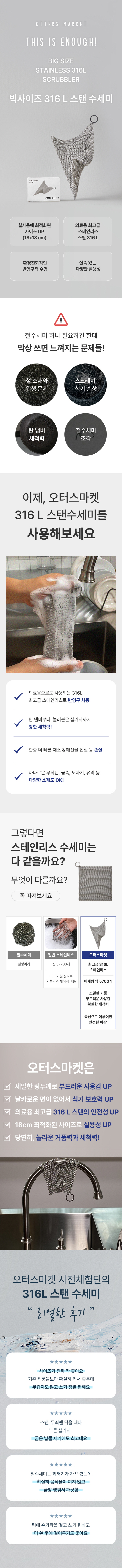 (NS홈쇼핑)오터스마켓 316L 스텐링 수세미 탄냄비 무쇠팬 텀블러 세척 설거지 링수세미 18x18..