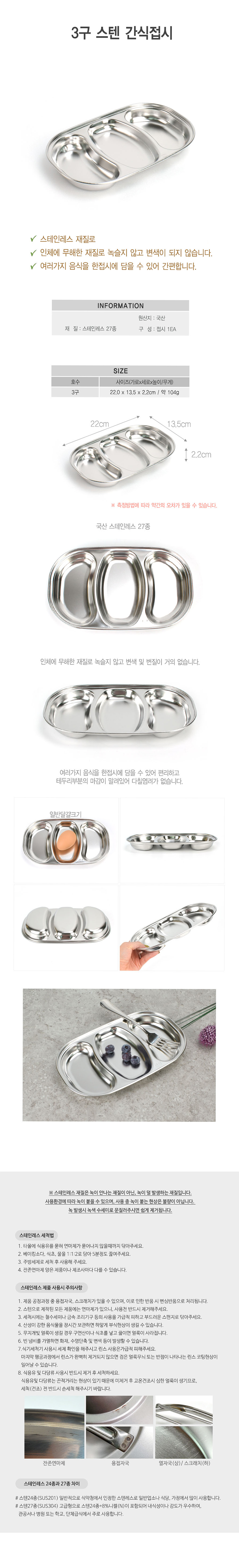 국산 스텐27종 3칸 나눔접시 간식접시 22x13.5cm (WFJF72B)