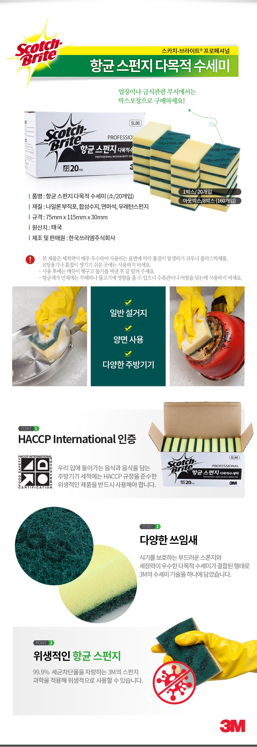3M 항균 스펀지 다목적 수세미 소 20개입