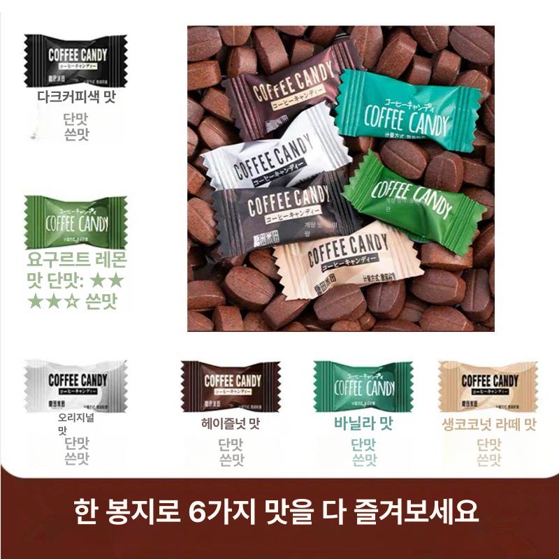 타미티미 커피콩캔디 6가지 혼합 맛 대용량 커피사탕 블랙 헤이즐넛 일본 대만 6개